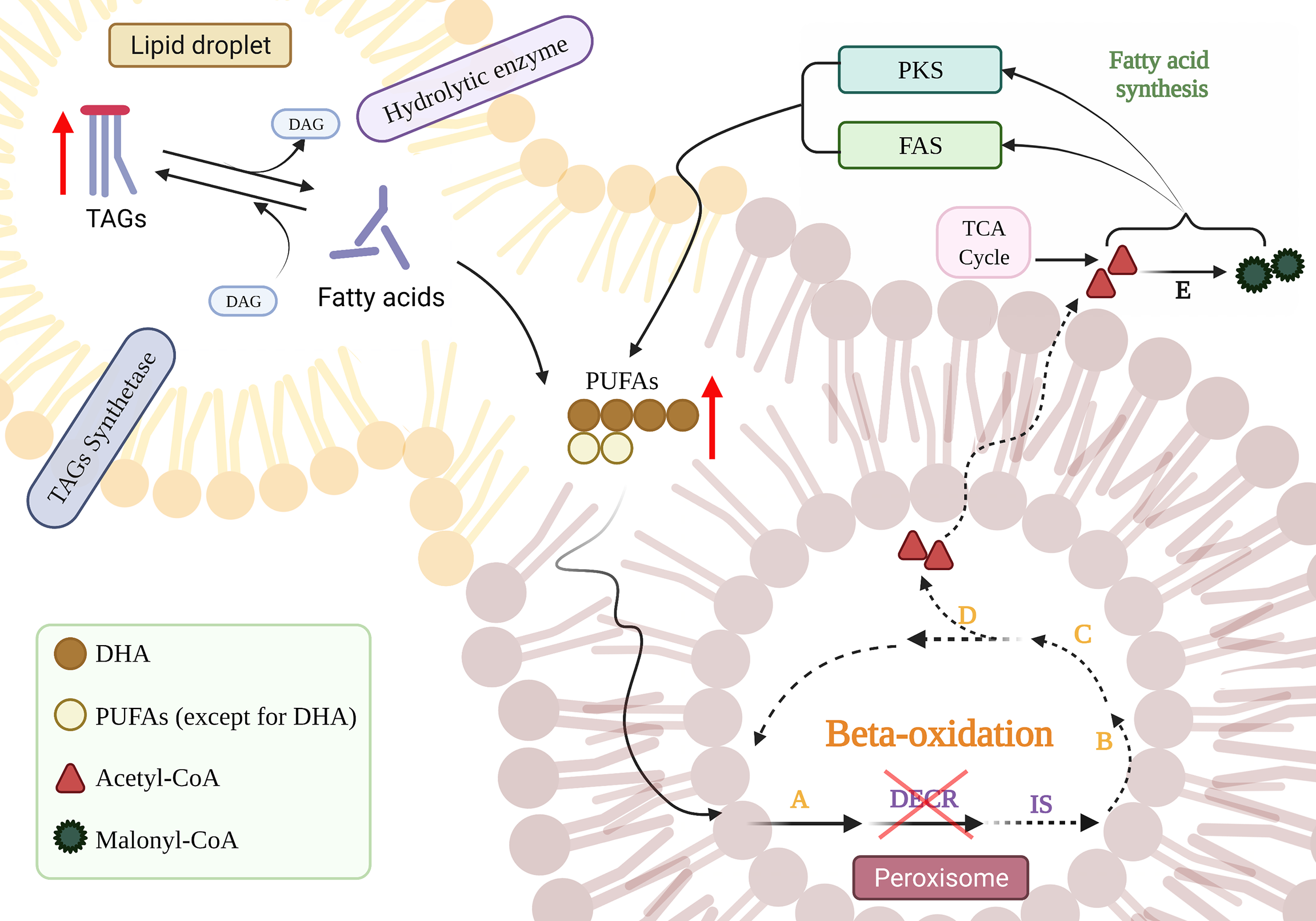 omega-3 polyunsaturated fatty acid, docosahexaenoic acid (DHA), PUFA beta-oxidation, 2,4-dienoyl-CoA reductase (DECR), Aurantiochytrium sp.
