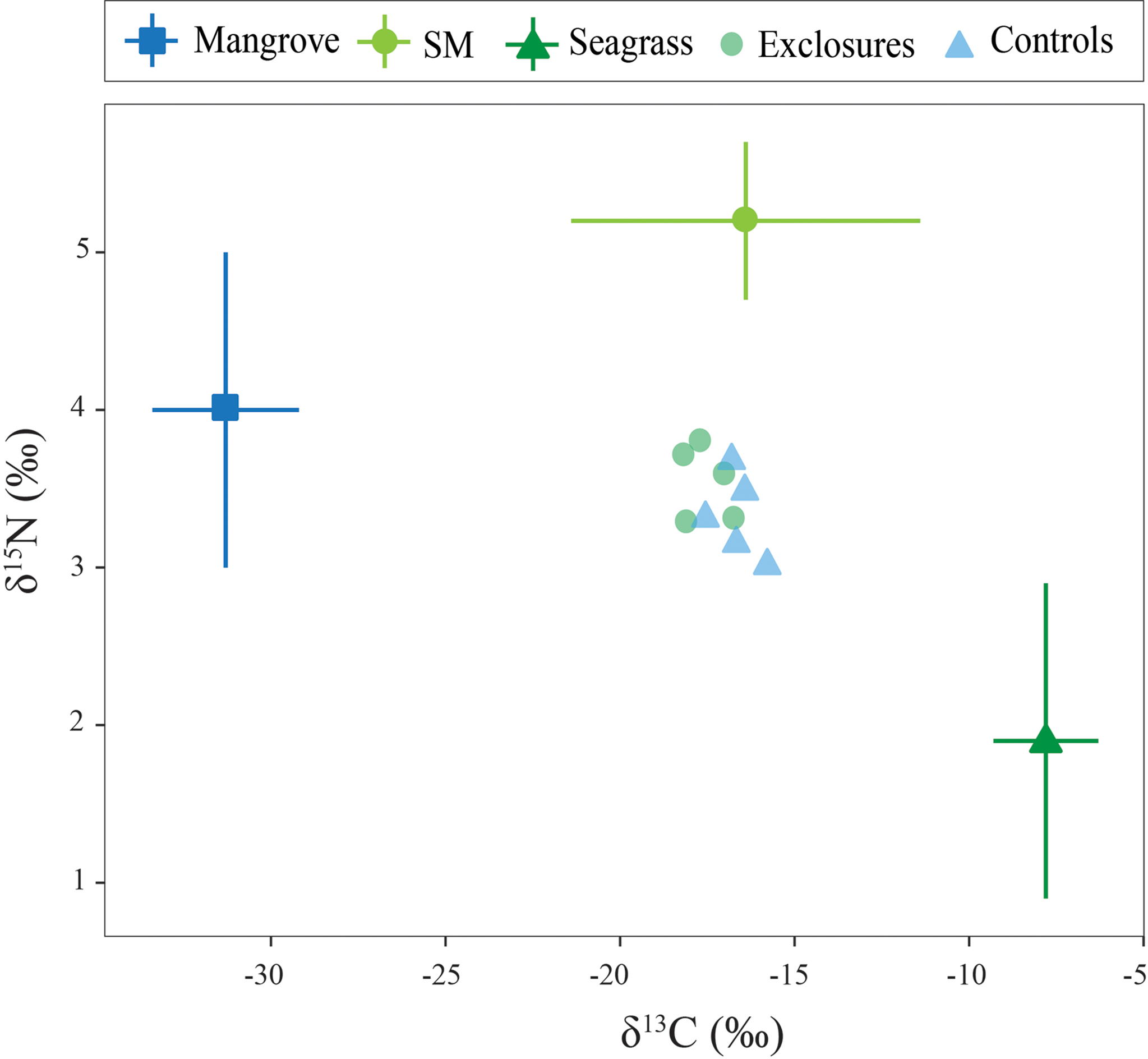 | Seagrass | Exclosures | Controls | Statistical analysis |