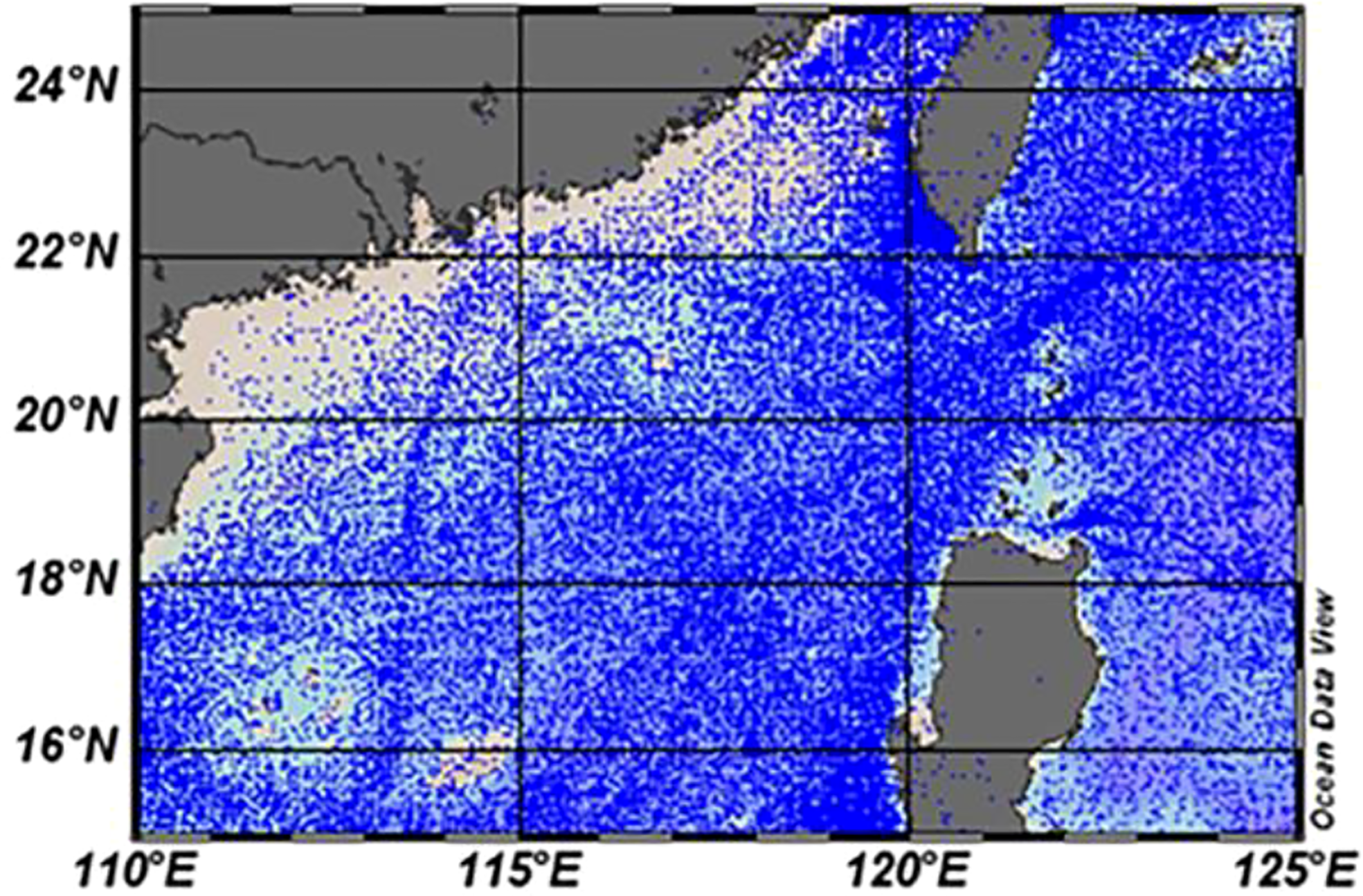 The historical T–S profile data used in this study are based on the WOD18 (World Ocean Database, 2018) produced by the NODC (National Oceanographic Data Center), which mainly includes high-resolution CTD, XBT, DRB (drifting buoy), PFL (profiled buoy) and MRB (anchor buoy) data (Boyer et al., 2018). These data were supplemented by Argo float data obtained from the China Argo Real-time Data Center. The spatial range is from 110°E to 125°E, 15°N to 25°N, and the time range is from 1 January 1993 to 1 January 2018. The distribution of the Argo stations is shown in Figure 1, and they are spread throughout the northern South China Sea. Furthermore, quality control for this extensive profile dataset is essential to improve the accuracy of the results (Chaigneau et al., 2011). Thus, a valid database is constructed in several steps as follows: