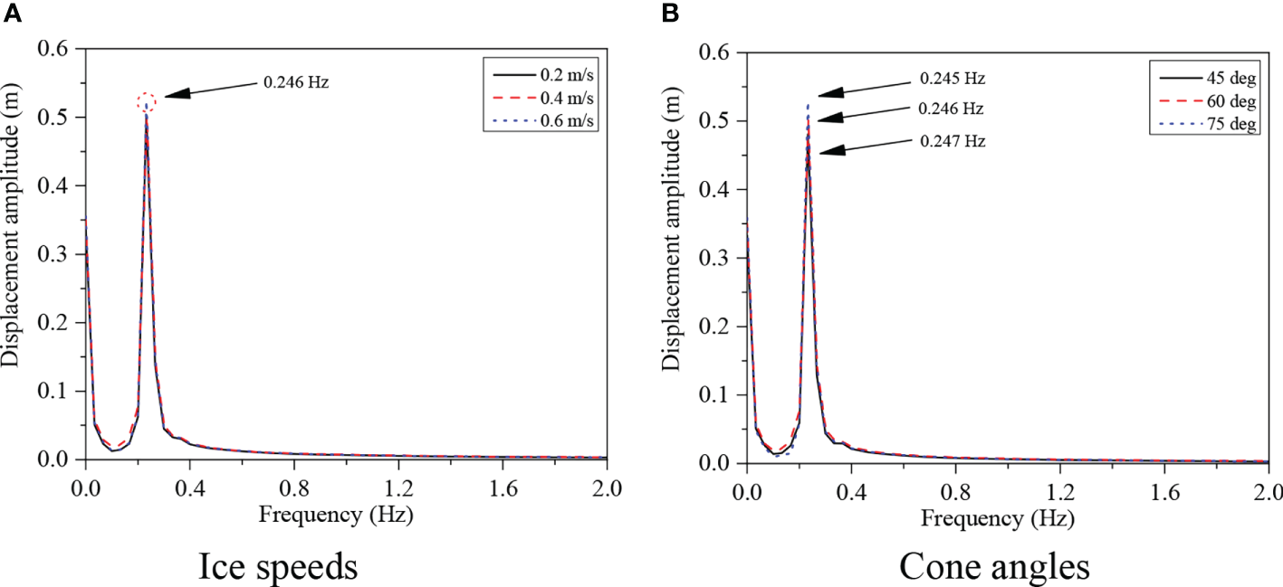 As a renewable and clean energy, wind energy plays an important role in the field of power generation, which has led to the rapid development of offshore wind turbines (OWTs) (Zhang et al., 2020; Zhao et al., 2021). Since the Europe 2020 agreement set the target of at least 20% of the electricity production coming from renewable energy sources by 2020, the cumulative installed capacity of OWTs in Europe has more than quadruplicated. In the OWT research, the dynamic analysis of OWTs (Wang et al., 2022; Ren et al., 2022) was investigated under combined environment load conditions recommended by design standards of IEC and DNV (IEC, 2012; DNV GL, 2016). However, as the construction of offshore wind farms gradually advances to the cold sea, the OWT shall be continuously affected by large-scale floating ice in the cold sea area. Therefore, ice-induced structural vibration has become a major factor affecting the safe operation of the OWT structure. In order to avoid ice-induced structural vibrations resulting in excessive motion response of OWTs, positive and inverted ice-breaking cones are extensively installed in the collision position of OWT substructure subjected to ice floe. It can reduce the ice loads by transforming the failure mode of sea ice from crushing failure mode to bending failure mode.