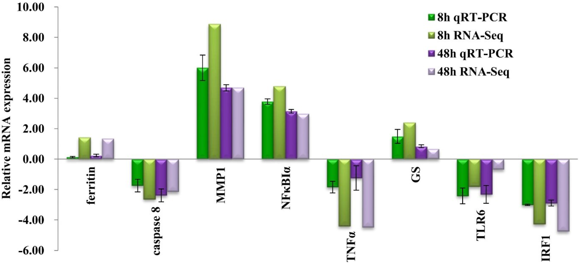 RPS9, Ribosomal Protein S9; NFκBIα, inhibitor of NF-κBα; TLR6, Toll-like receptor 6; MMP1, matrix metalloproteinase 1; TNFα, tumor necrosis factor α; IRF1, interferon regulatory factor 1.