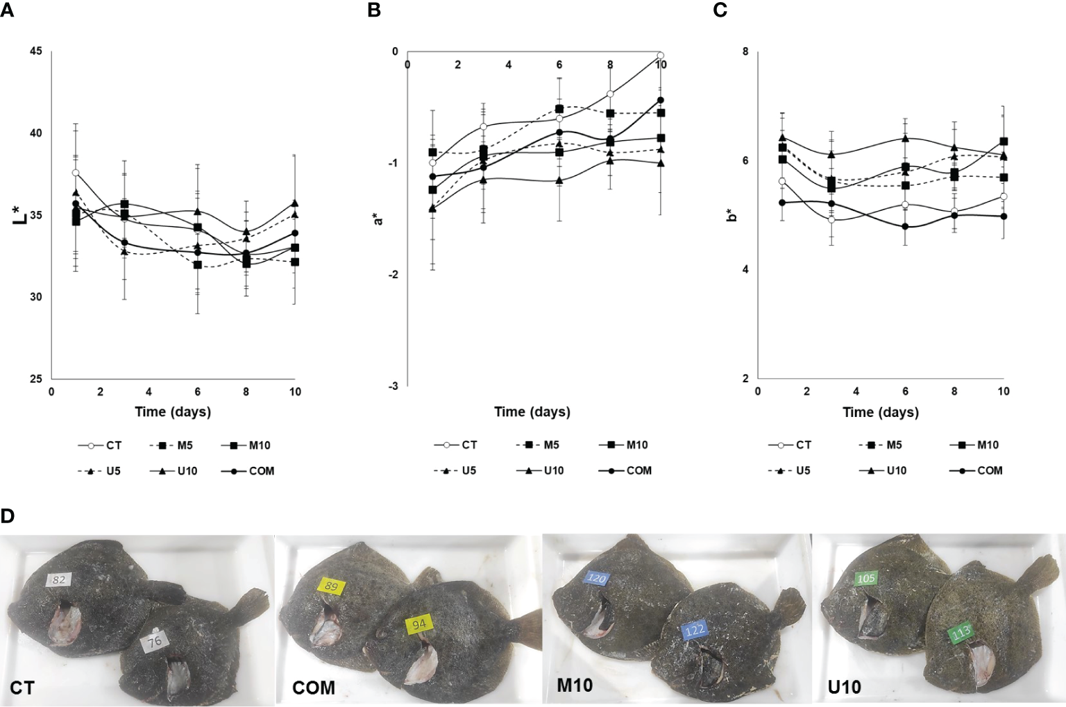 On the other hand, turbot (Scophthalmus maximus) is emerging as a suitable candidate when it comes to diversifying fish species in Southern European aquaculture. Owing to their leanness, this flatfish species can be marketed both as fresh or frozen, since a high lipid content is regarded as a major constraint for frozen storage. To date, the potential effects of functional aquafeeds on objective quality parameters in turbot remains virtually unexplored.