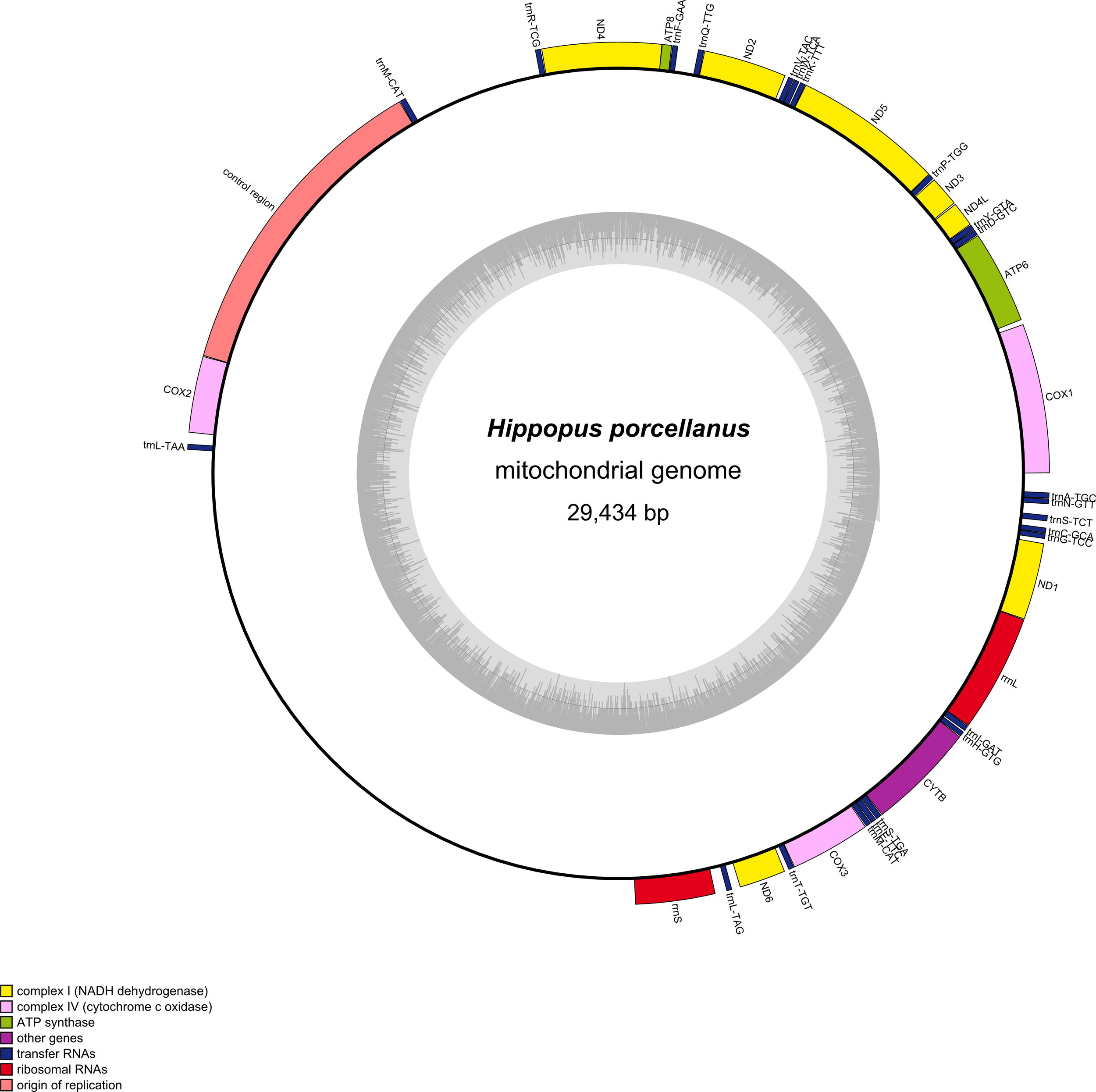 Organization of the mitochondrial genome of H. porcellanus (29,434bp).