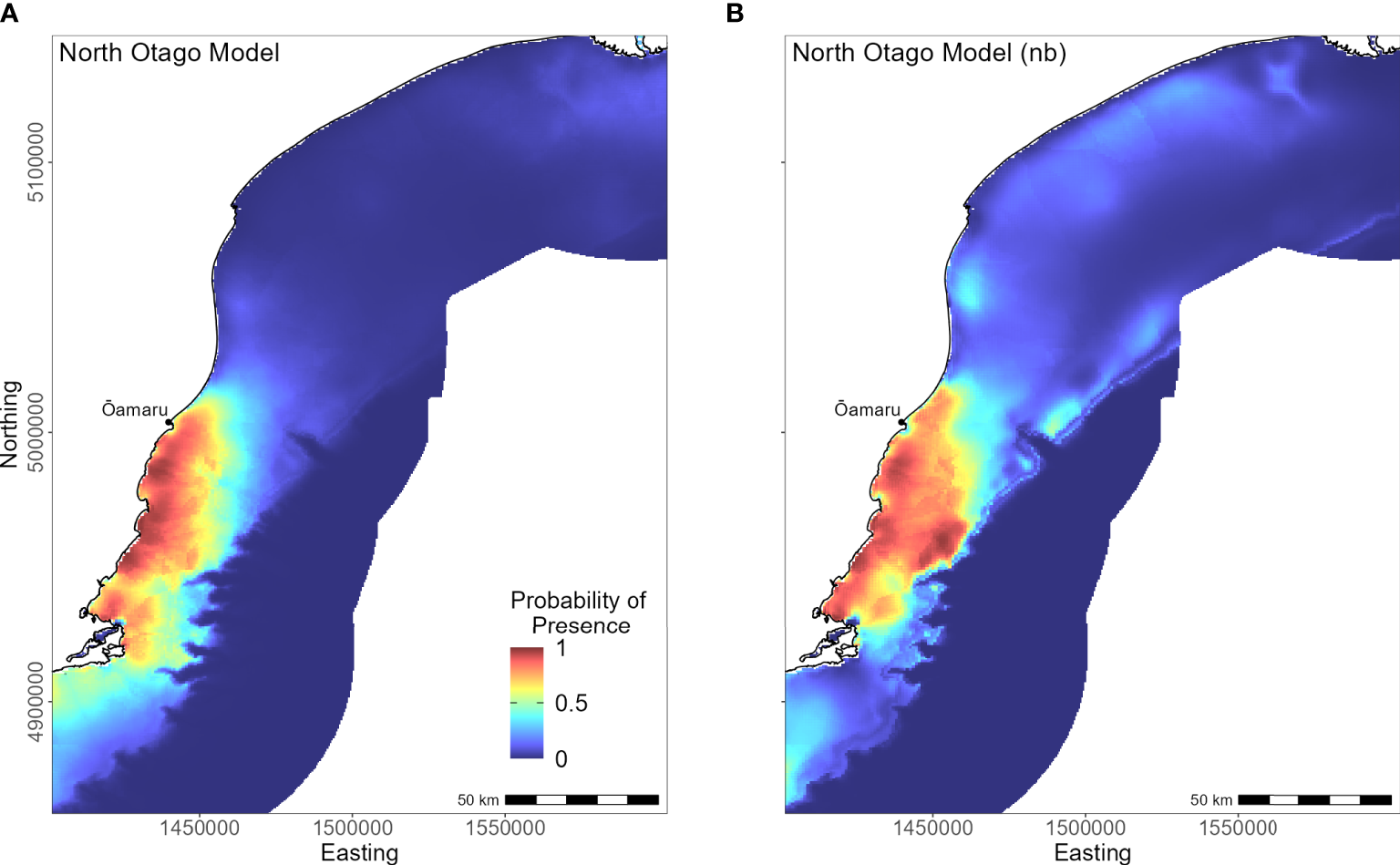 Hickcox RP, Mattern T, Rodríguez-Recio M, Young MJ, van Heezik Y and Seddon PJ (2022) Staying close to home: Marine habitat selection by foraging yellow-eyed penguins using spatial distribution models. Front. Mar. Sci. 9:967741. doi: 10.3389/fmars.2022.967741