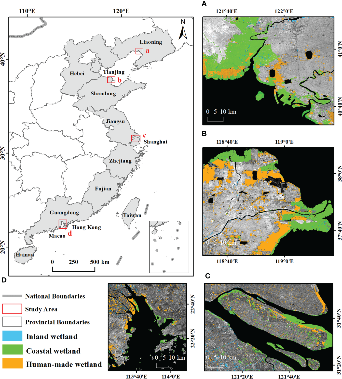 Mao D. Wang Z. Du B. Li L. Tian Y. Jia M. et al . (2020). National wetland mapping in China: A new product resulting from object-based and hierarchical classification of landsat 8 OLI images. ISPRS. J. Photogramm. Remote. Sens.164, 11–25. doi: 10.1016/j.isprsjprs.2020.03.020