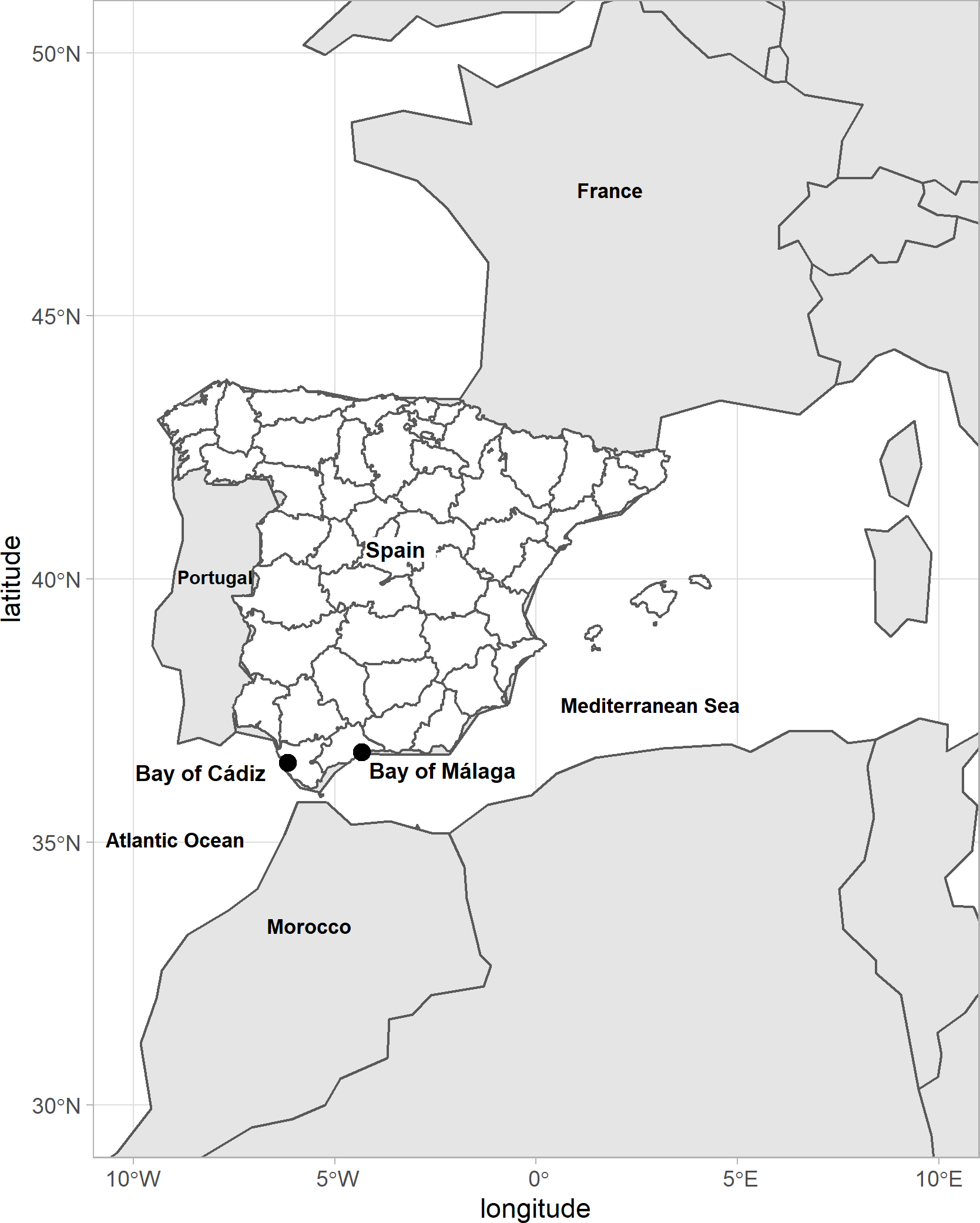 Map of Spain indicating the sites sampled in the present study.