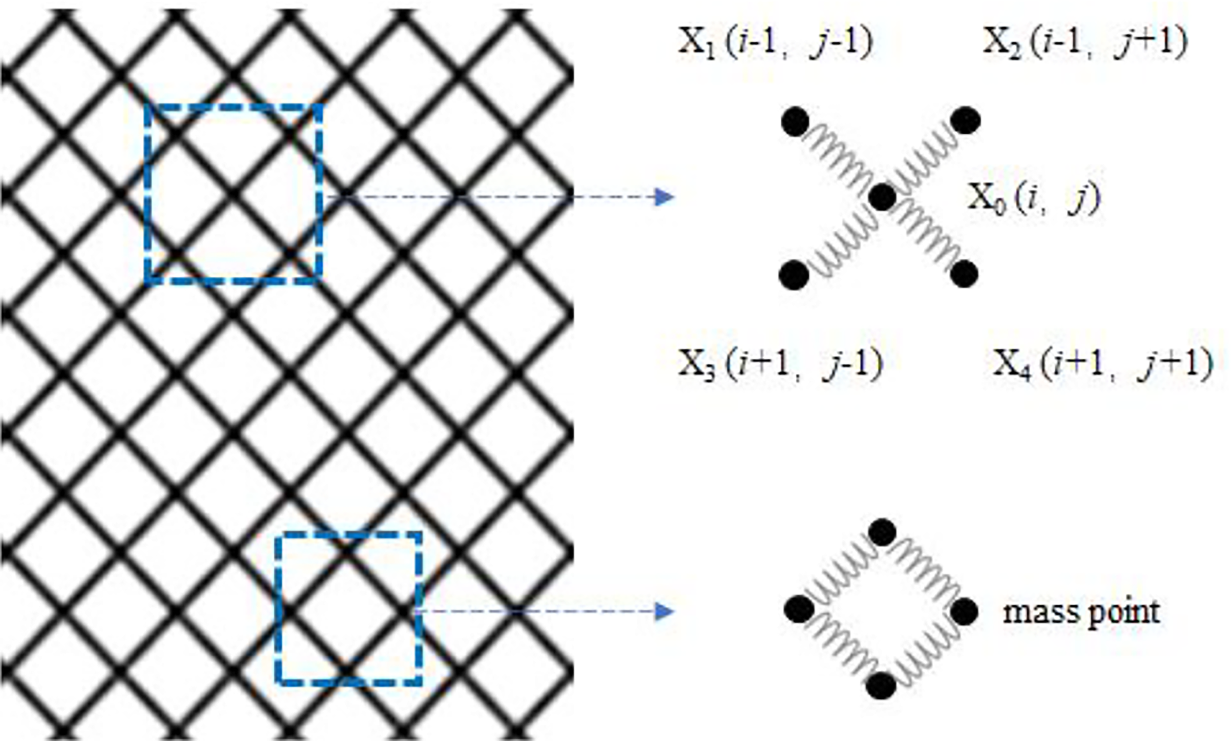 The mesh grouping method is used to reduce the number of calculations. A given number of actual meshes are modeled by a fictitious equivalent mesh, which has the same physical features as the actual meshes (Lee et al., 2005). In this study, 24×24 actual meshes were modeled as a fictitious equivalent mesh. Similarly, the cables (bridle line and hauling rope) were divided into finite elements, each consisting of a finite number of mass points connected by springs with the same properties as described above.