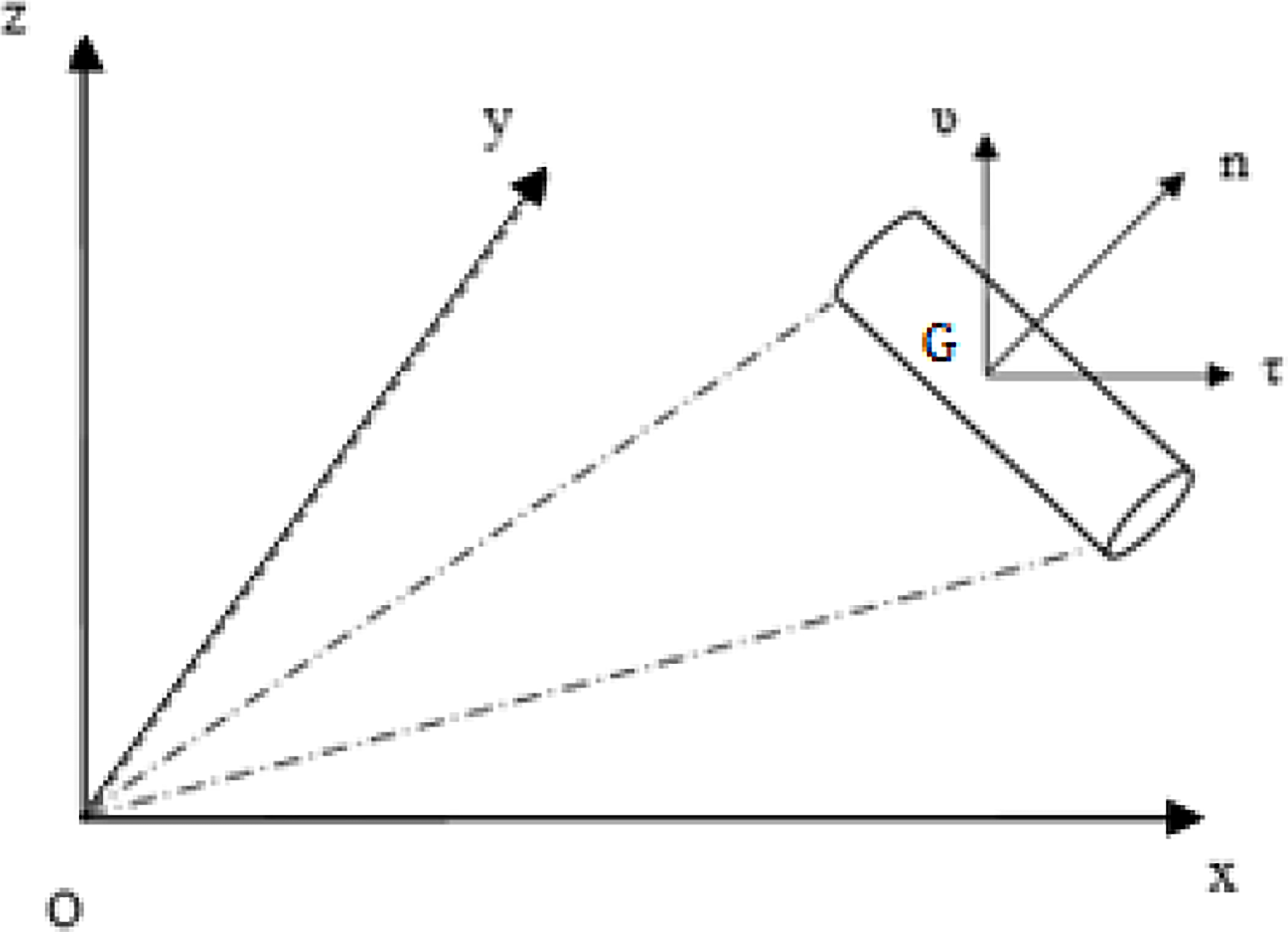 The translation of the motion of the microsegment between the fixed-coordinate system and body-coordinate system is expressed as:
