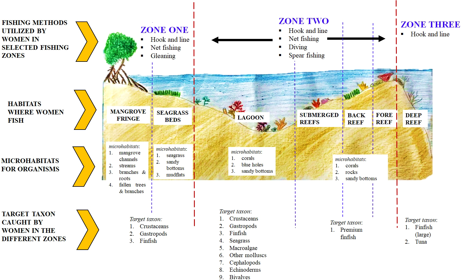 This study provides insights into fisherwomen’s ILK and how they are hidden gems needed to inform more holistic resource management efforts at the community level. This paper creates an awareness on the importance of women’s ILK and its contributions fisheries management. In doing so, this study discusses how fisherwomen interpret the effects of environmental changes on their marine and freshwater resources. Furthermore, an emphasis on the value of using local vernacular names and local dialects the conservation will be discussed. Finally, this study provides recommendations for the incorporation fisherwomen’s ILK into management practices which can benefit the communities, fishers and the resources.
