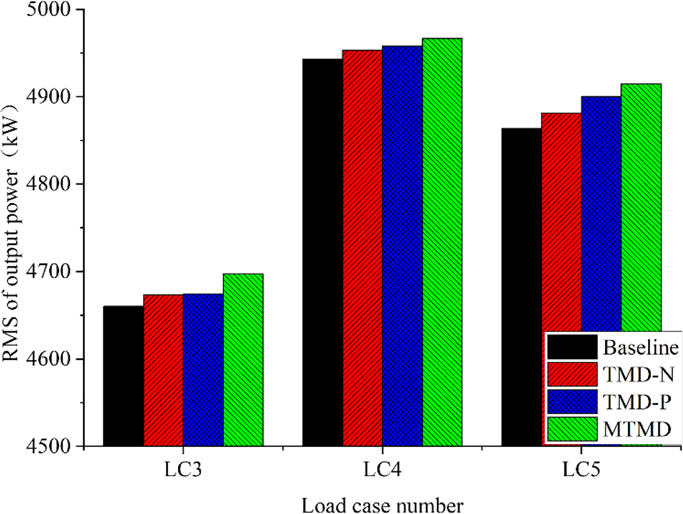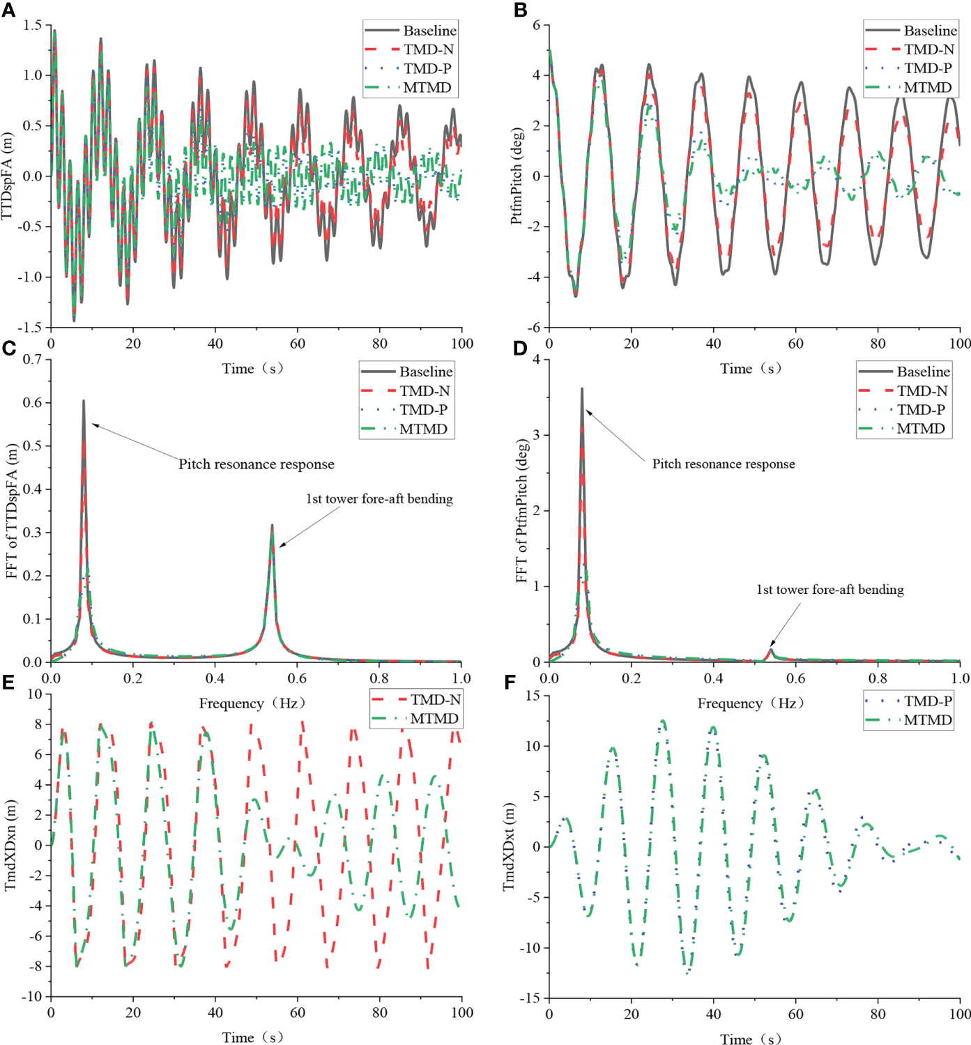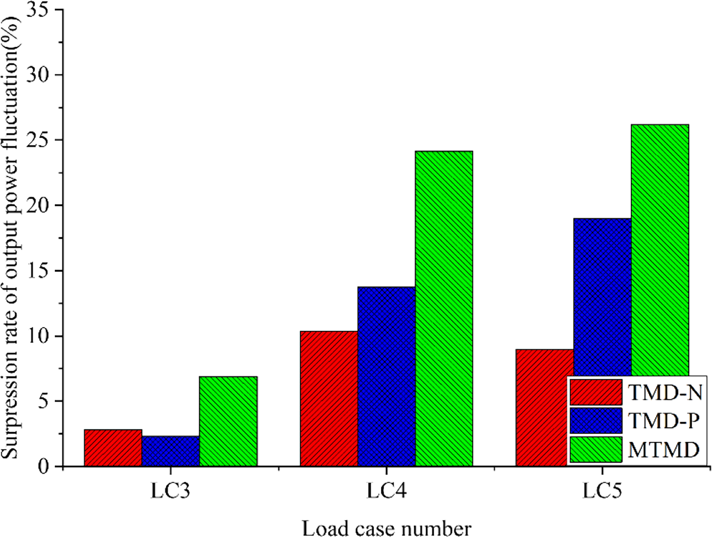Mitigation effects of the optimized TMDs are evaluated based on the reduced dynamic responses of the barge FOWT under the typical winds and waves.