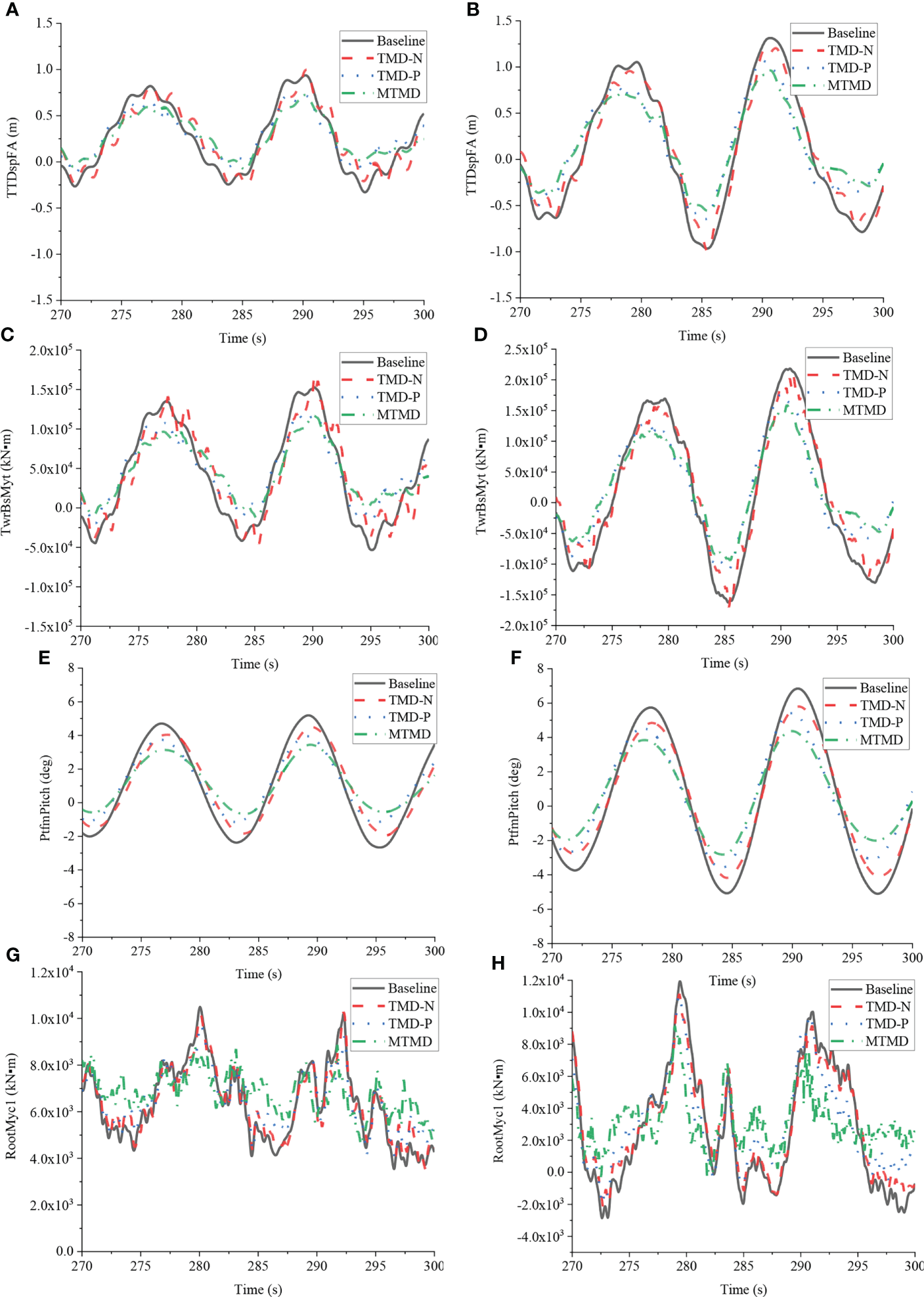 where ktmdn and ktmdp denote the stiffness of the local damper in the nacelle and platform, dtmdn and is the damping of each local damper.