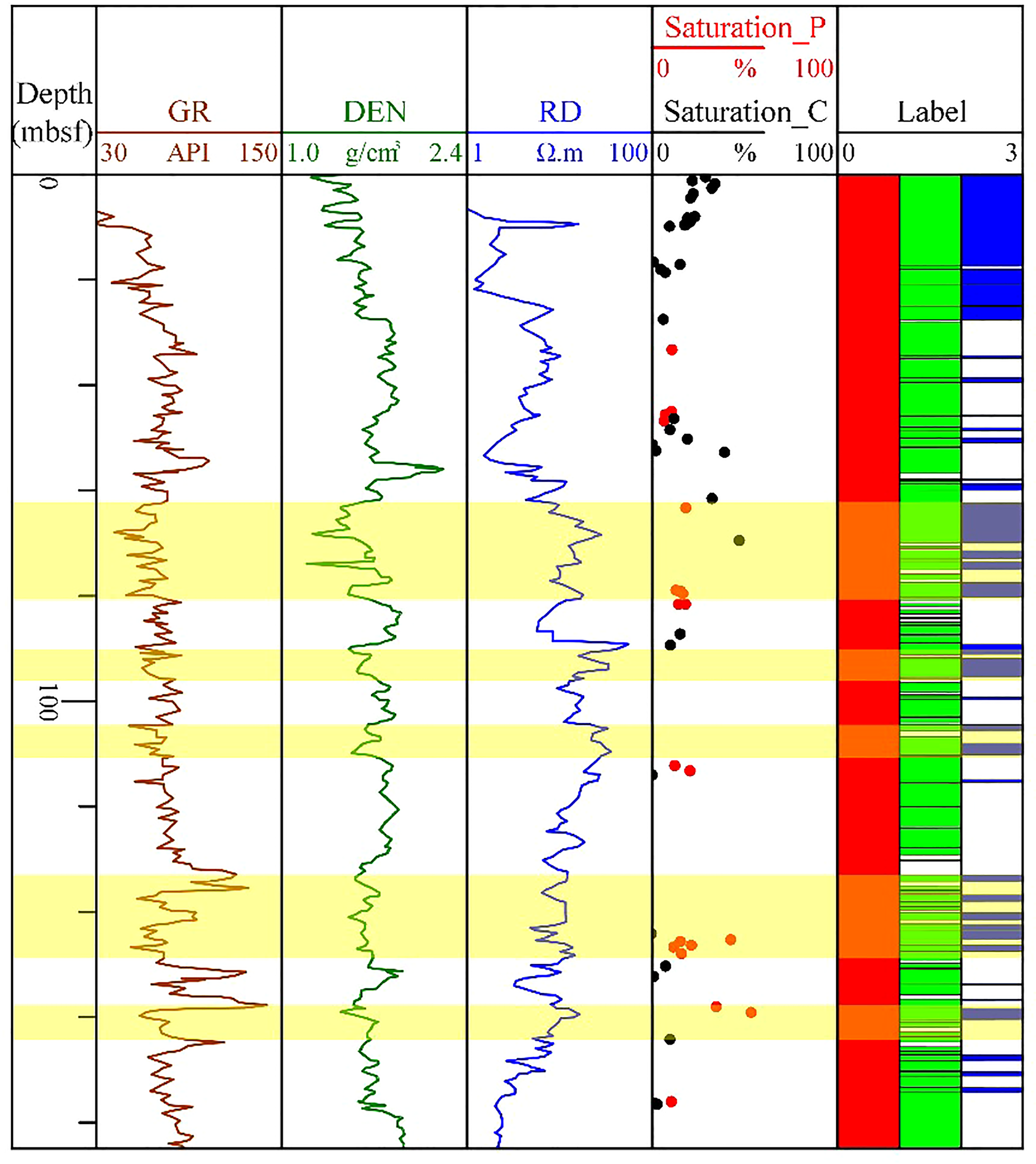 Figure 2 shows that the clustering algorithm gave reasonable results based on the parameter information of the core. Combined with previous research on the impact of the above geological parameters on hydrate enrichment, we believe that this reservoir classification method is indeed effective. The next step is to explore whether effective stratigraphic division can be achieved based on logging curve responses to deepen our understanding of hydrate enrichment.