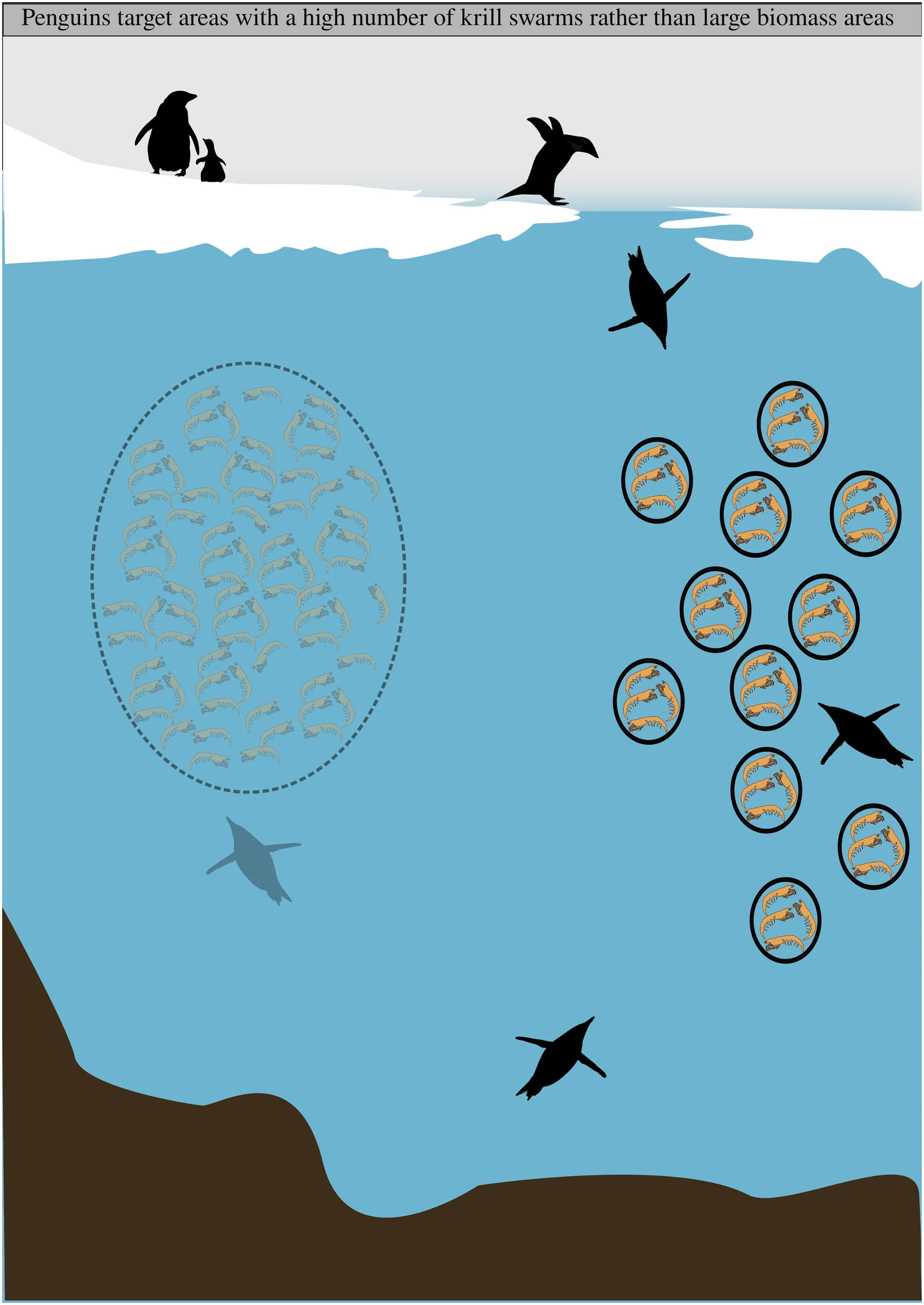 foraging behaviour, Pygoscelis adeliae , Euphausia superba , krill swarm, dive behaviour, predator-prey