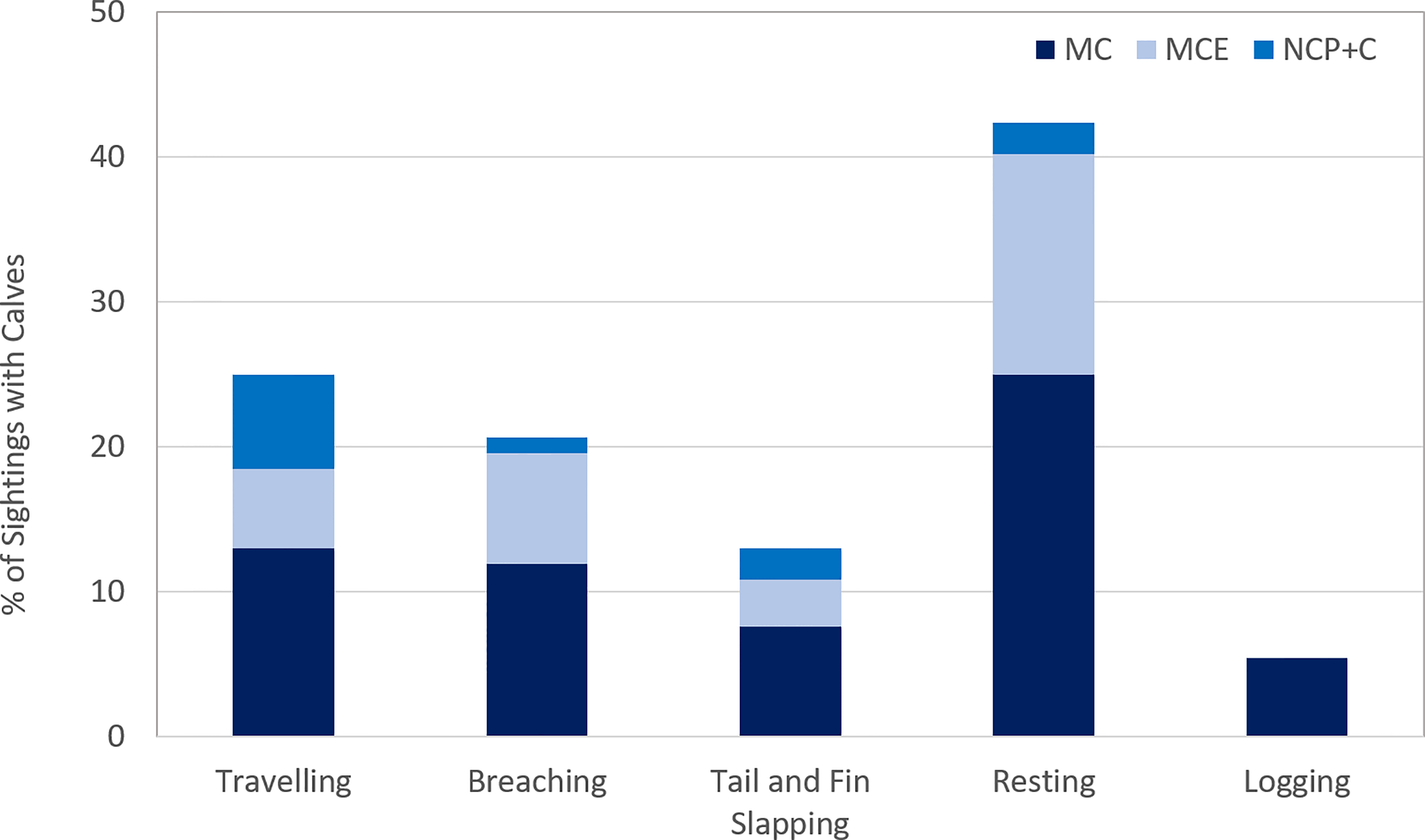 | Mother and calf (MC) | An adult-sized individual accompanied closely by a whale approximately 1/3 its length, often in contact with the adult-sized whale sometimes providing nurturant behaviours (Herman and Antinoja, 1977; Mobley and Herman, 1985) |