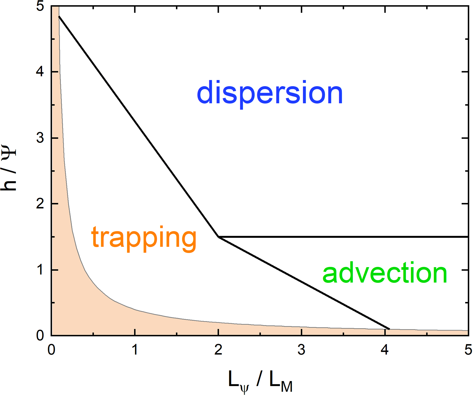 As Lψ/LM increases, the advection overtakes the refraction, weakening the capture. When in the “strong dispersion” regime, where h/Ψ≫1 , the concentration becomes insignificant. Besides, the even function MC has a stronger concentration than the odd MS .