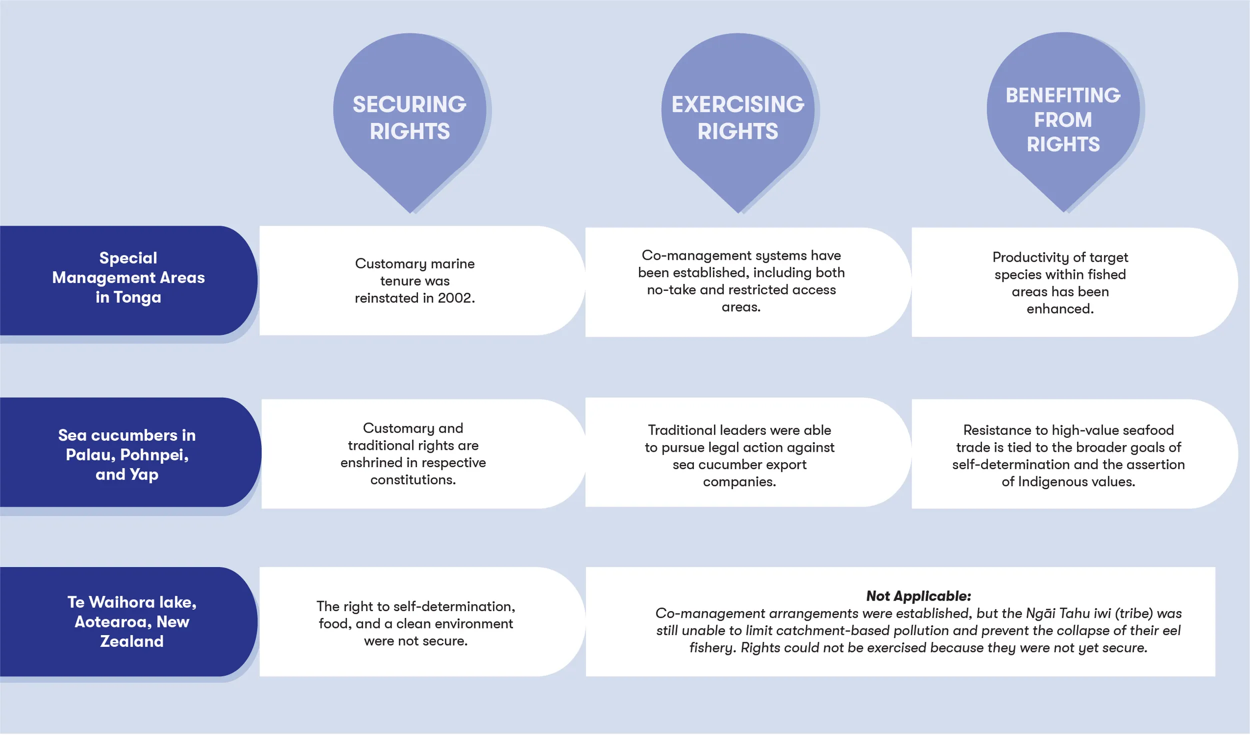 Fourth, we review the evidence that supporting the rights of people, including by acknowledging the leading role of many Indigenous Peoples in conservation, is an effective tool for positive and enduring marine conservation impact (i.e., practical benefits).