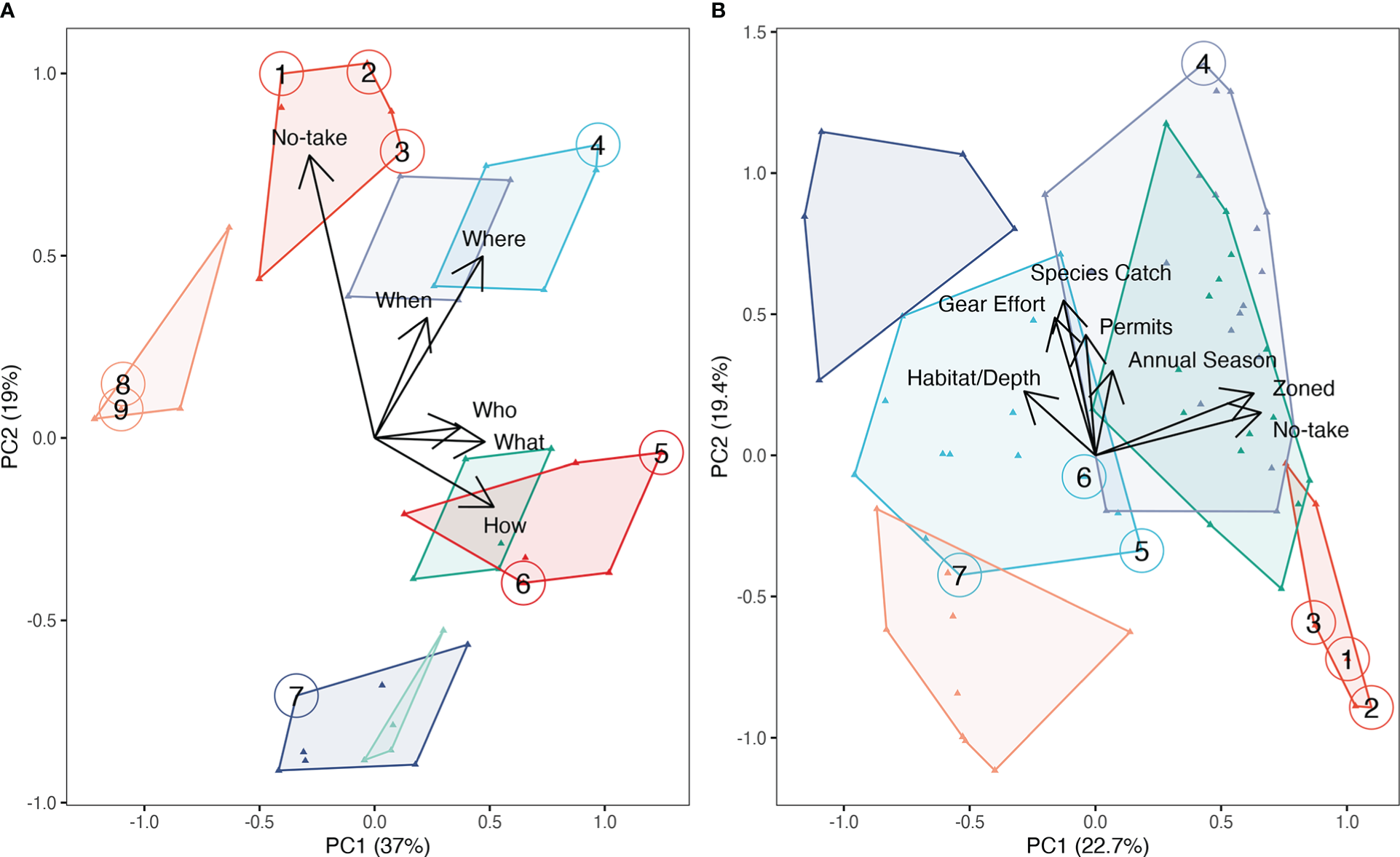 | Who | Restrictions on who is allowed to fish—different access/activities allowed within the MPA based on people’s identity | • Restrictions on who can fish based on cultural heritage • Restrictions on who can fish based on residency • Requires a permit • Requires membership of a fishing cooperative |