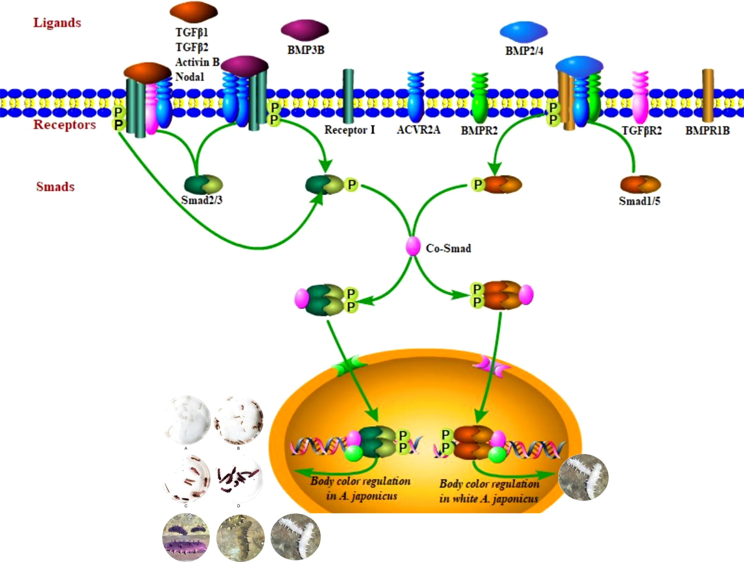 TGFβ signaling pathway, regulatory mechanism, pigmentation, Apostichopus japonicas , gene family divergence