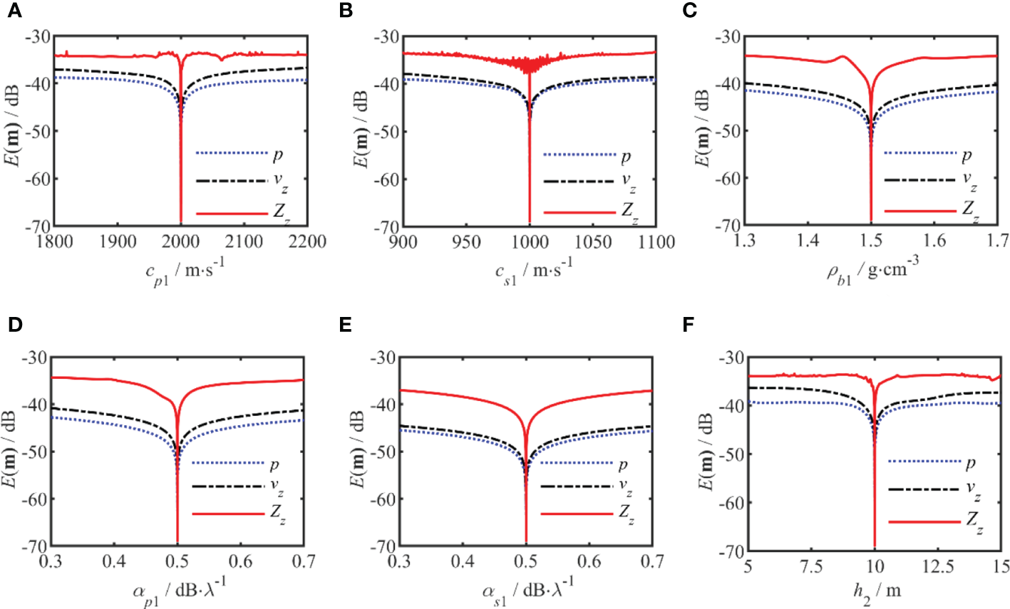According to the above analysis results, Zz has been shown to have higher sensitivity to geoacoustic parameters than p and vz. Zz is expected to provide higher precision for geoacoustic parameters in geoacoustic inversion than when only p or vz is used, especially for sound speed attenuations.