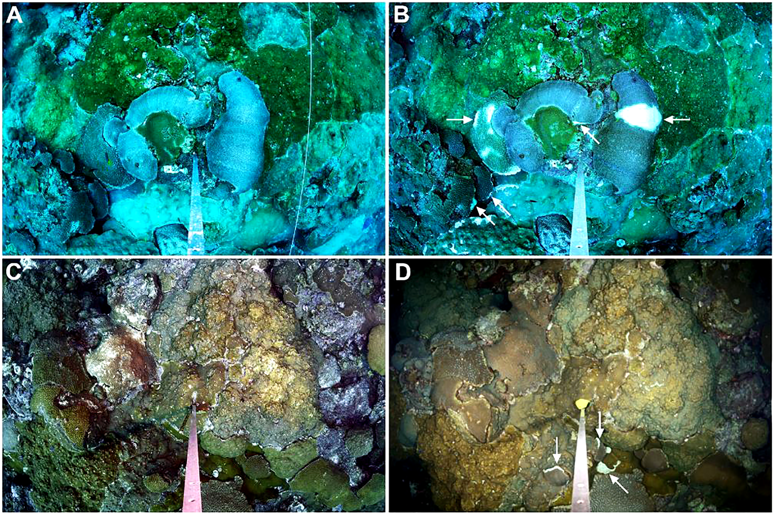 We thank the United States Department of Interior’s Bureau of Ocean Energy Management (BOEM) for supporting the Flower Garden Banks National Marine Sanctuary long-term monitoring program. We thank the National Coral Reef Monitoring Program (NCRMP) biological team divers for initial observations. NCRMP is funded by NOAA Coral Reef Conservation Project #743. Work on this project was also supported by NSF award #2109622 (to AC), NOAA Ocean Acidification Program award #NA19OAR0170354 (to XH), and the National Marine Sanctuary Foundation. Response cruises were conducted in tandem with BOEM and FGBNMS Monitoring Programs, as well as the NCRMP Climate Cruise led by Ian Enochs at NOAA AOML. We thank the National Marine Sanctuary Foundation and Moody Gardens Aquarium for rapid response assistance. We thank scientific divers from the NOAA dive center, partnering aquariums (Moody Gardens, Texas State Aquarium, and Audubon Aquarium), and partnering academic Institutions (Texas A&M Galveston, Texas A&M Corpus Christi, University of Miami CIMAS, and NOAA AOML). We thank Marilyn E. Brandt (University of the Virgin Islands) for sharing her input and expertise related to the potential etiology of this disease event. Fieldwork and sampling were conducted under permit: FGBNMS-2019-001.