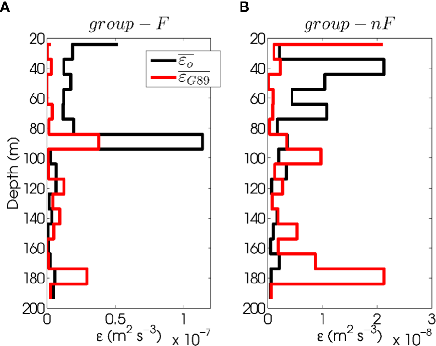 To obtain , we first removed spikes from the turbulence profiles to obtain the shear fluctuation power spectrum, , from the fall speed of the profiler, where k is the wavenumber determined from its fall speed. Assuming isotropic turbulence Hinze, 1979, observed was estimated by integrating within an appropriate wavenumber range following the methods of Oakey (1982):