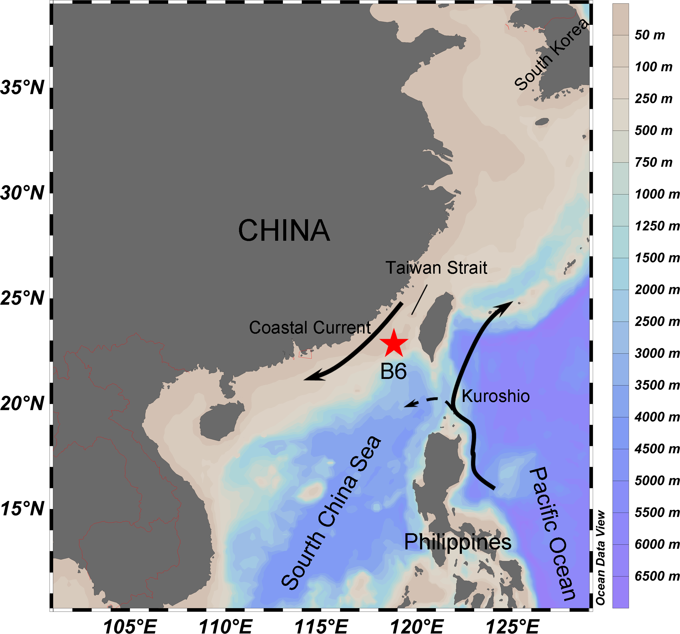 Map of sampling area. The study station (B6) was located in the southern of Taiwan Strait, off the west coast of Guangdong province, China.