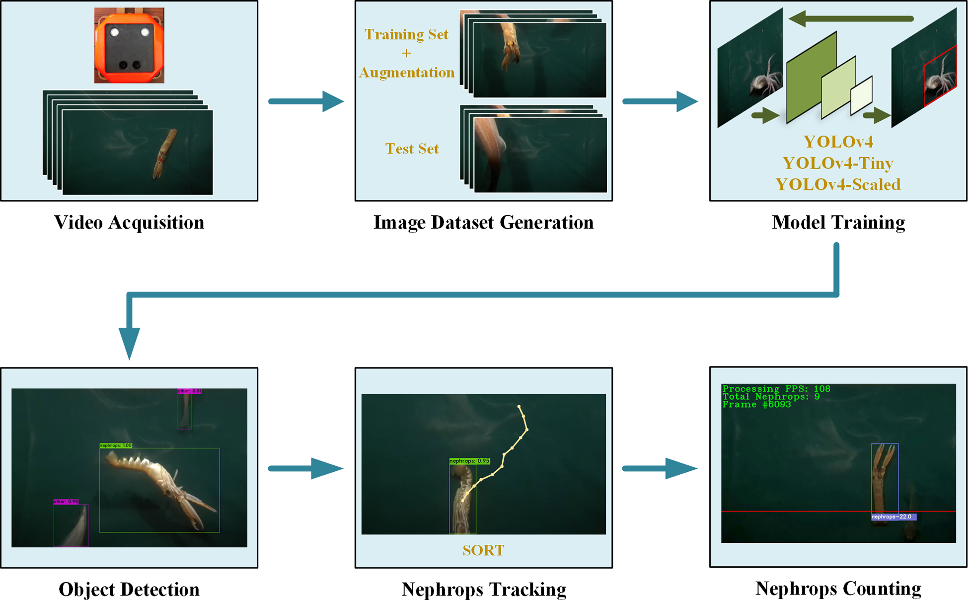 demersal trawling, Nephrops counting, object detection, object tracking, sort, underwater video processing, YOLO
