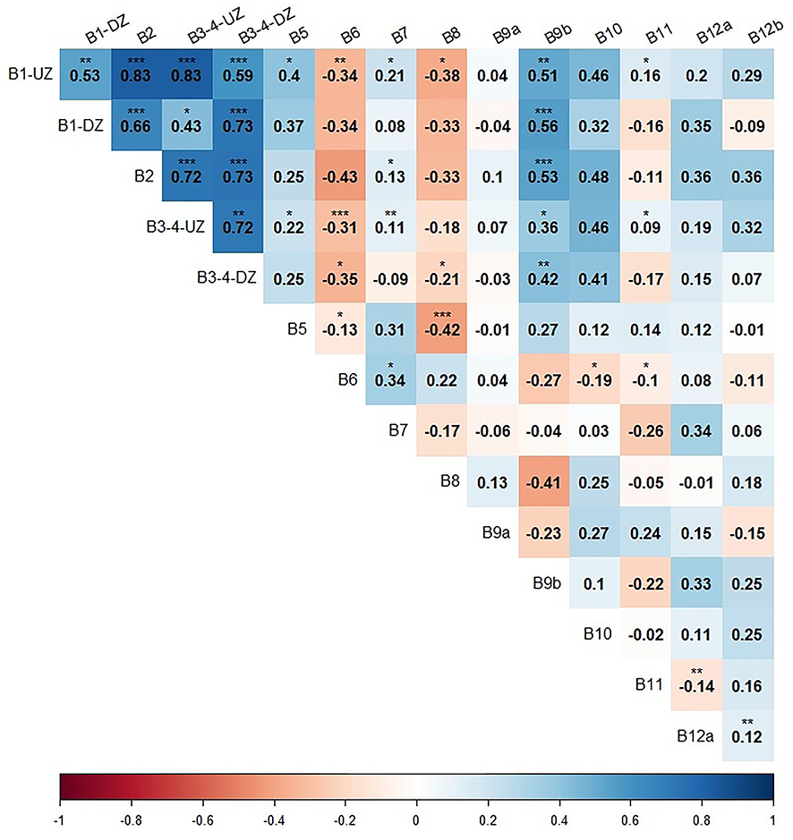 The abundance of perennial non-calcified macroalgae can be linked to good ecological conditions and the absence of significant pressures (mechanical erosion, terrigenous inputs, diminution of light). Fucales (Sargassum spp., Ericaria spp., Gongolaria spp., Cystoseira spp.), Laminariales (Laminaria rodriguezii Bornet), Osmundaria volubilis and Carpomitra costata (Stackhouse) Batters are among the most representative taxa (Gautier and Picard, 1957; Joher et al., 2012; Thibaut et al., 2016; Aouissi et al., 2018; Bermejo et al., 2018; Bruno de Sousa et al., 2019; Jódar-Pérez et al., 2020; Reynes et al., 2021). These long-lived species provide a stand for seasonal macroalgae (boxes 3 and 4) and sessile fauna (box 10), a habitat (boxes 9 and 12) and a trophic resource (box 5). They contribute significantly to the primary production of the ecosystem (Ballesteros, 1990). Codium bursa (Olivi) C.Agardh, C. vermilara (Olivi) Delle Chiaje and Sphaerococcus coronopifolius Stackhouse, perennial species observed during the present work, were not considered. The abundance of these species known as tolerant can be linked to a stressor (Vidondo and Duarte, 1995; Ruitton et al., 2017). In addition, C. fragile (Suringar) Hariot is a non-indigenous species (Provan et al., 2005). The mean percentage cover in the upper zone is a suitable descriptor to assess this compartment.