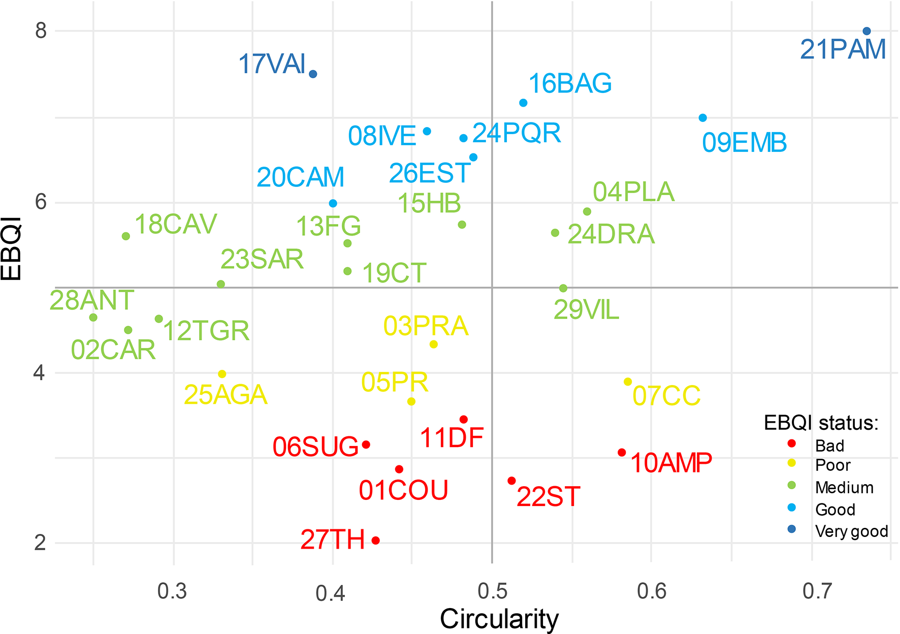 | Code | Sites | Upper zone | Deep zone | |||||