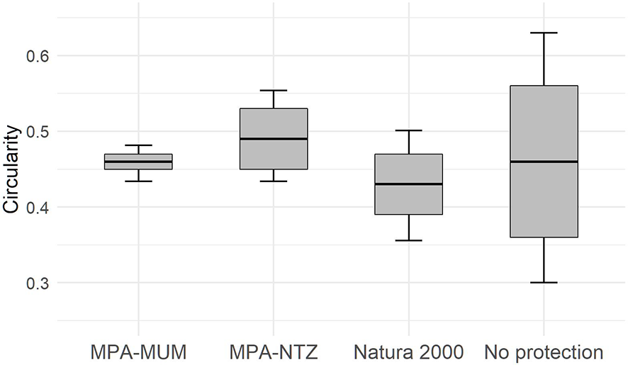 This compartment includes planktivorous pelagic or demersal fish, with life traits significantly linked with the substrate. Strictly pelagic planktivorous teleosts with no interaction with the bottom (e.g., Clupeidae, Engraulidae) were not considered. The main species observed were Spicara maena (L., 1758), S. smaris (L., 1758), Boops boops (L., 1758), Chromis chromis (L., 1758) and Anthias anthias (L., 1758). The latter two indicate the vicinity of hard substrates. CDB play an important role for these species: a spawning ground for Spicara spp. (Harmelin and Harmelin-Vivien, 1976) and an essential habitat for Boops boops juveniles. Planktivorous species are also essential in the trophic network providing a food supply for high level predators (Bănaru et al., 2013; Cresson et al., 2020). The alpha specific richness (number of species per site, considering all methods) was measured to assess the planktivorous teleosts compartment.