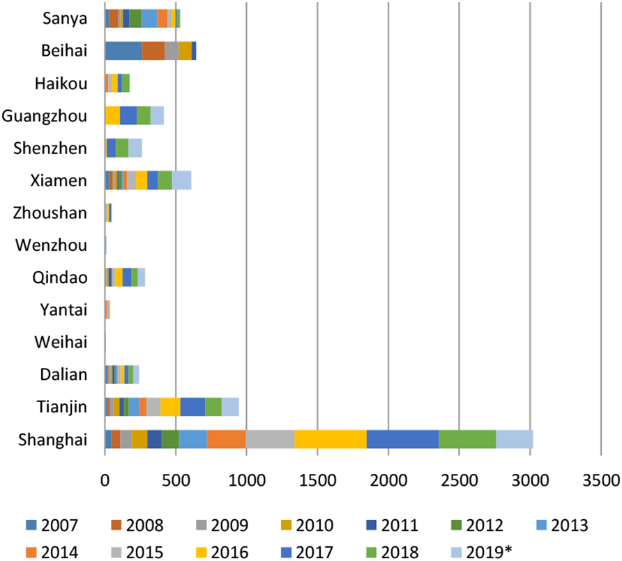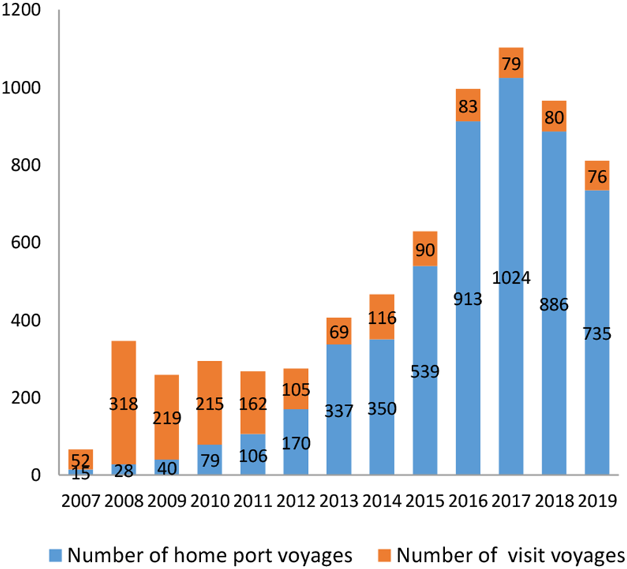 Cruise voyages of Chinese ports from 2007 to 2019.