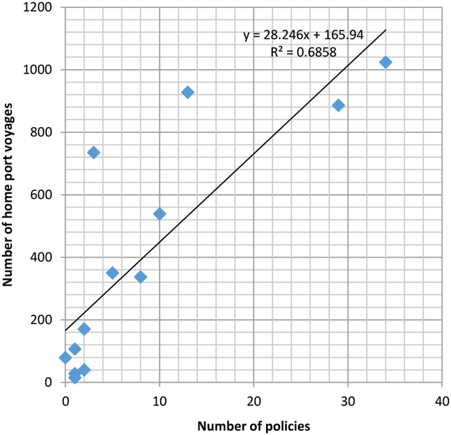 Linear relationship between cruise policies and home port voyages.