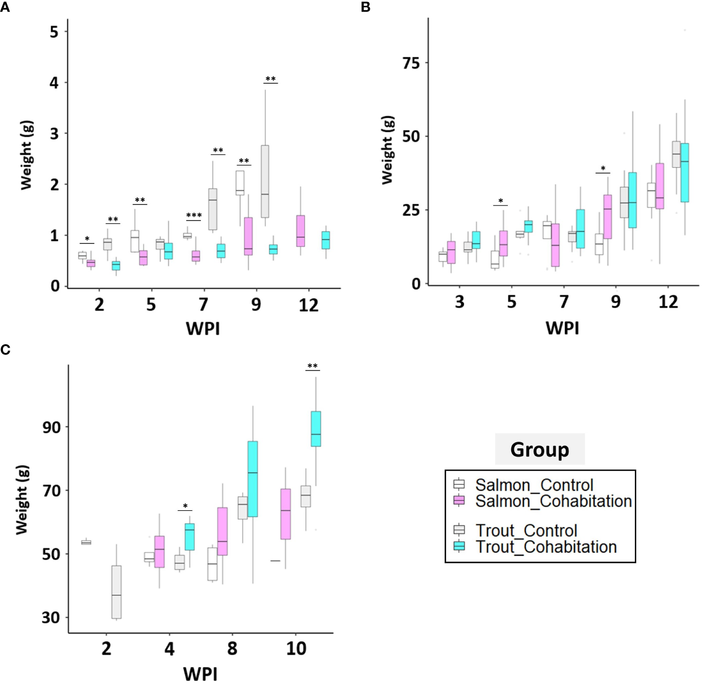| Stage | Group | Species | WPI | ||||