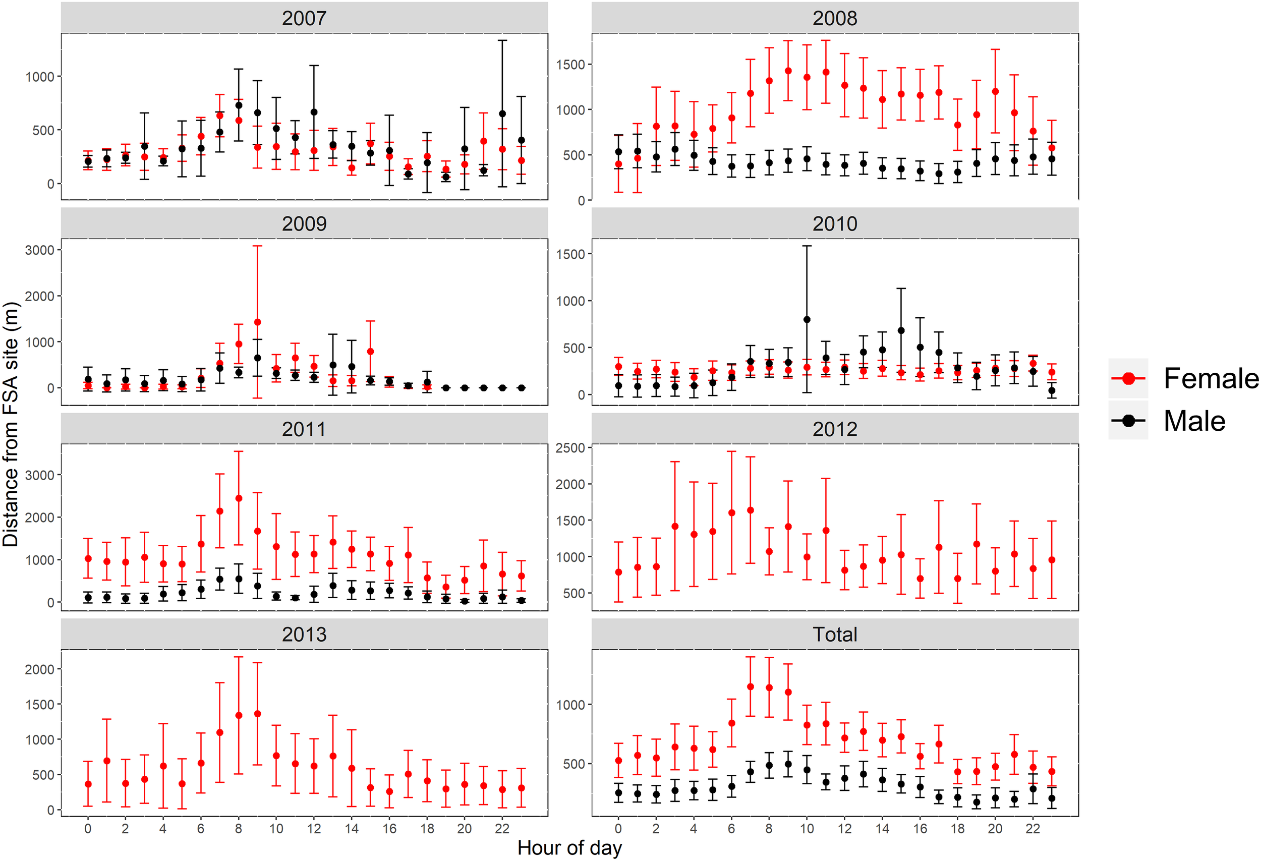 | Total detections | No. unique stations | MCP (km2) | Maximum distance from FSA site (m) | |||