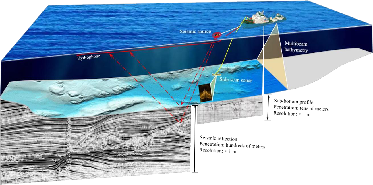 Multiple developments in offshore geophysical technology (Figure 1) over four decades have allowed marine scientists and engineers to determine and map seabed fluid flow. High-resolution seismic profilers, side-can sonar systems, multibeam echo sounders, remotely operated submersibles (ROVs), and autonomous underwater vehicles (AUVs) have enabled wide, rapid, and detailed surveys from coastal seas to deep oceans. These developments facilitate worldwide discoveries of the widespread emissions of water, petroleum fluids, and hydrothermal fluids. To examine the distribution and nature of the seabed fluid flow, reviewing all data, reports, and publications on seabed fluid flow is necessary. However, offshore geophysical technologies and publications have progressed at an incredible rate that it is impossible to include every example. Therefore, this study is limited to the examples of features associated with seabed fluid flow in the China Seas. The literature on hydrothermal vents is extensive, and therefore we focus on “cold” seeps such as pockmarks, seeps, domes, mud volcanoes, and gas hydrates. This study provides the scientific community with the compendium of seabed fluid flow as the base for additional analytical and profound approaches to subsequent investigations.