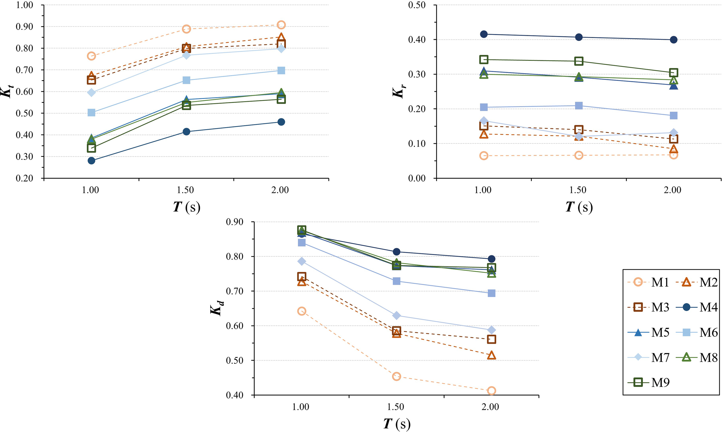 Influence of wave period on the wave transmission process (i.e., Kt, Kr, and Kd).