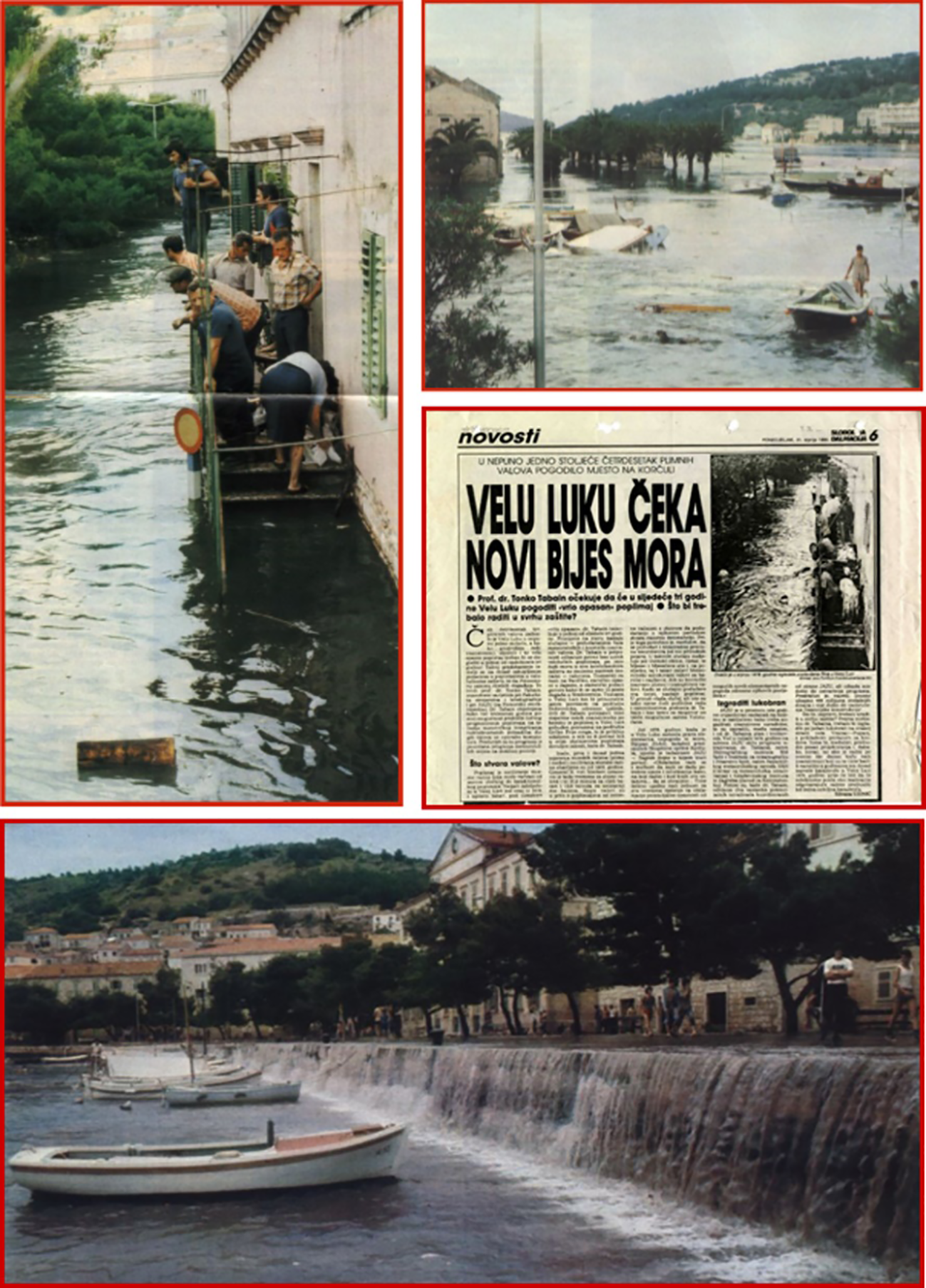 Compilation of photos and newspaper clips illustrating the catastrophic sea level oscillations and floods during the 21st of June 1978 meteotsunami event in Vela Luka, Croatia (after Vučetić and Barčot, 2008).