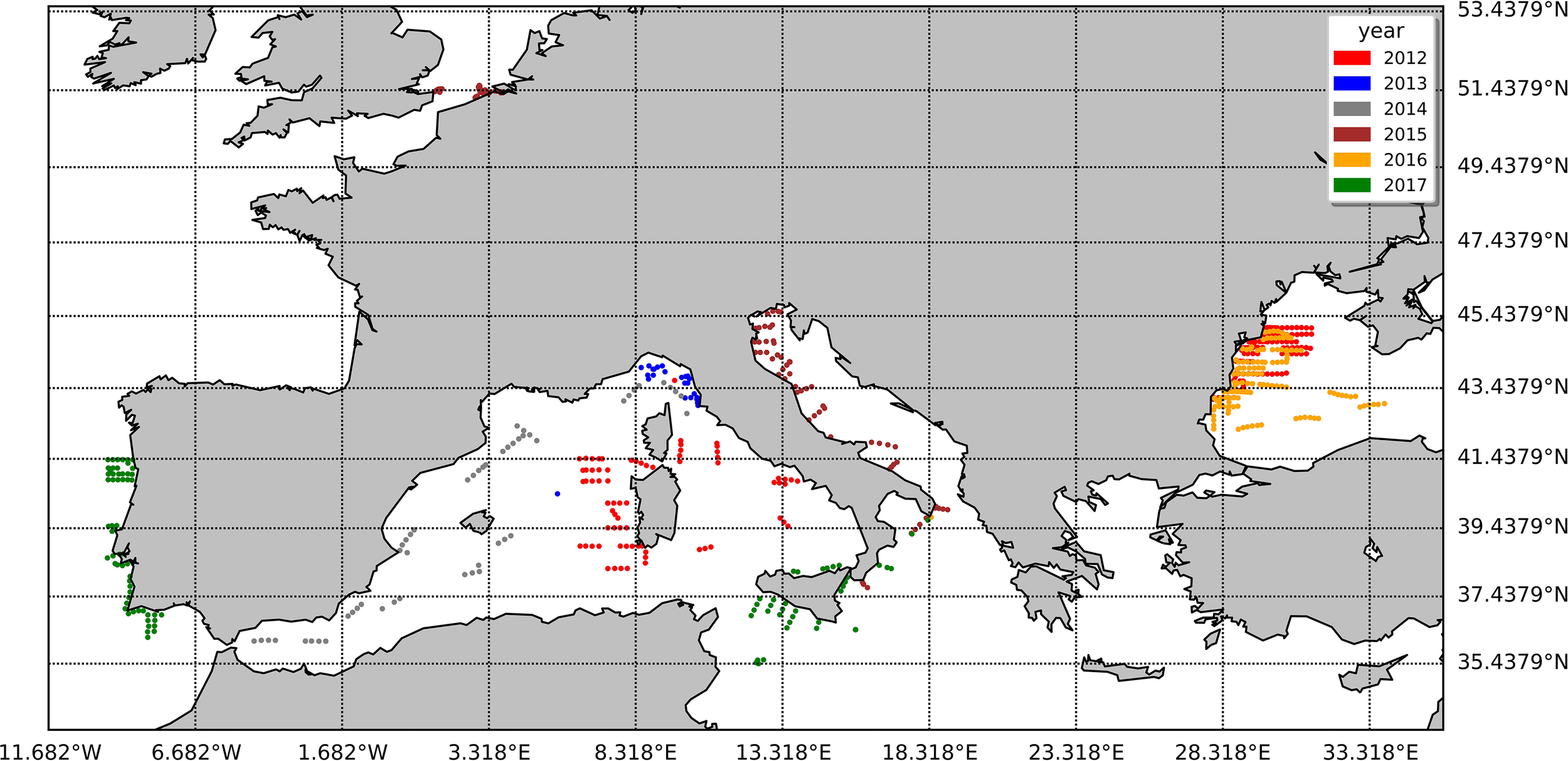 | WM | 23 March–9 April 2012 | Western Mediterranean Sea | 73 | 0.3407 | 0.485 | 0.083 | 3.402 |