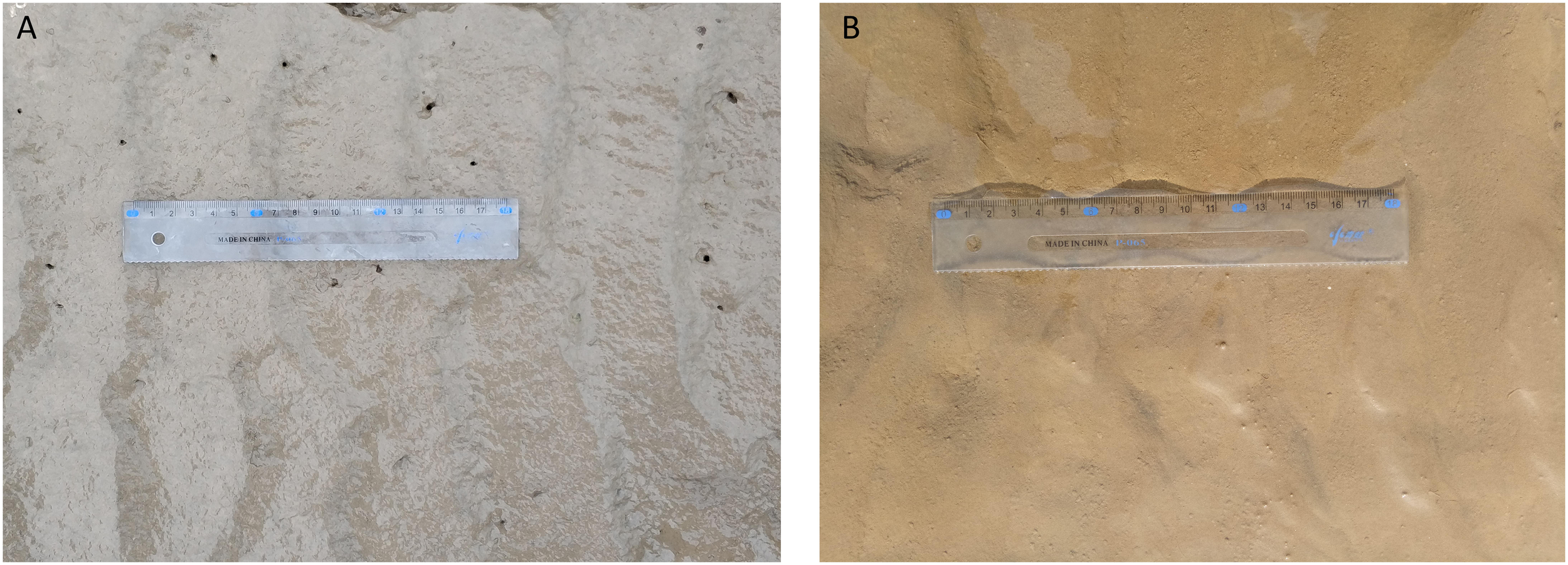 Wave parameters such as wave height and wave period were measured using self-logging sensors, including the SBE-26plus Seagauge (Sea-Bird Electronics, Washington, USA) and RBRsolo |wave (RBR Ltd., Ottawa, Canada). The instruments were horizontally placed on the sediment surface, with their pressure sensors located 5 cm above the bed surface (Figures 1D, E). To obtain high-frequency water level measurements, the pressure data were recorded at 4 Hz for a duration of 256 seconds, resulting in a total of 1024 measurements per burst.