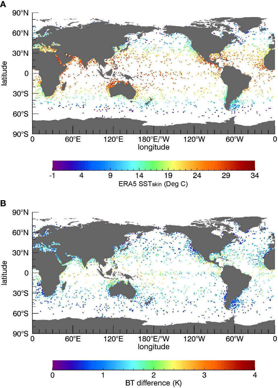 Llewellyn-Jones D. T. Minnett P. J. Saunders R. W. Závody A. M. (1984). Satellite multichannel infrared measurements of sea surface temperature of the NE Atlantic Ocean using AVHRR/2. Q. J. R. Meteorol. Soc.110 (465), 613–631. doi: 10.1002/qj.49711046504