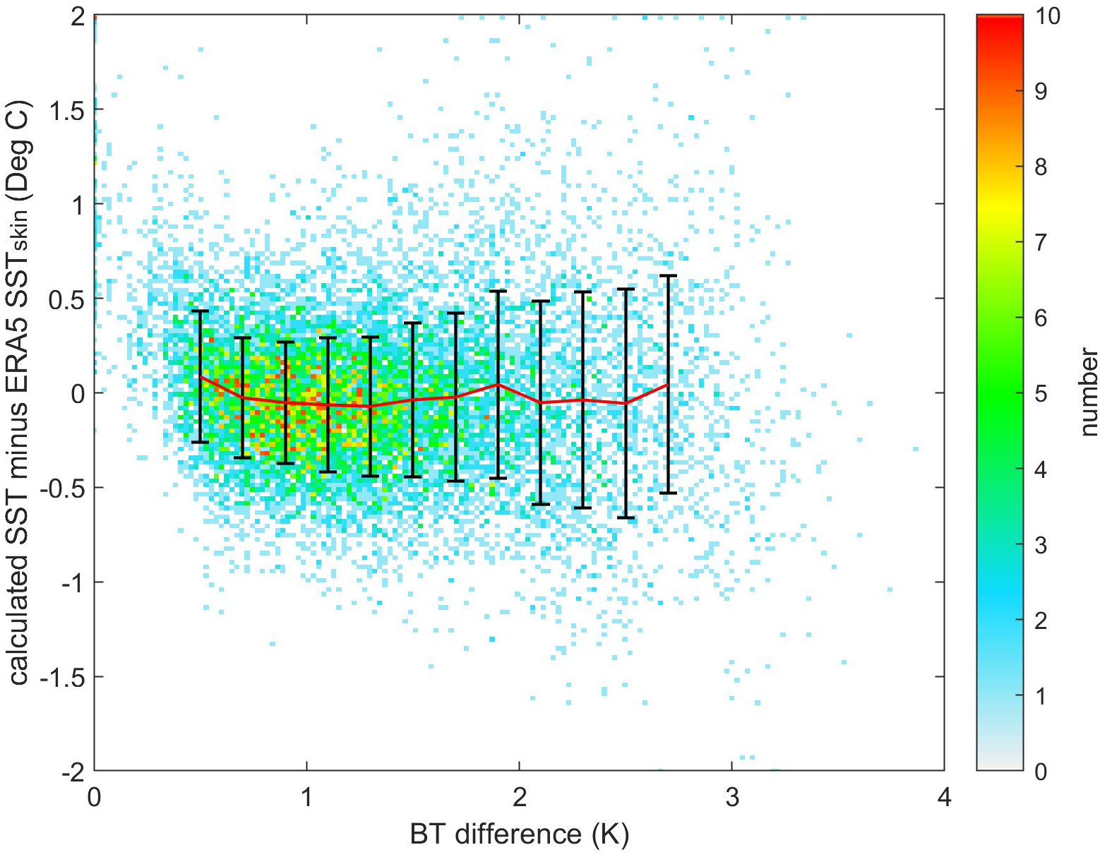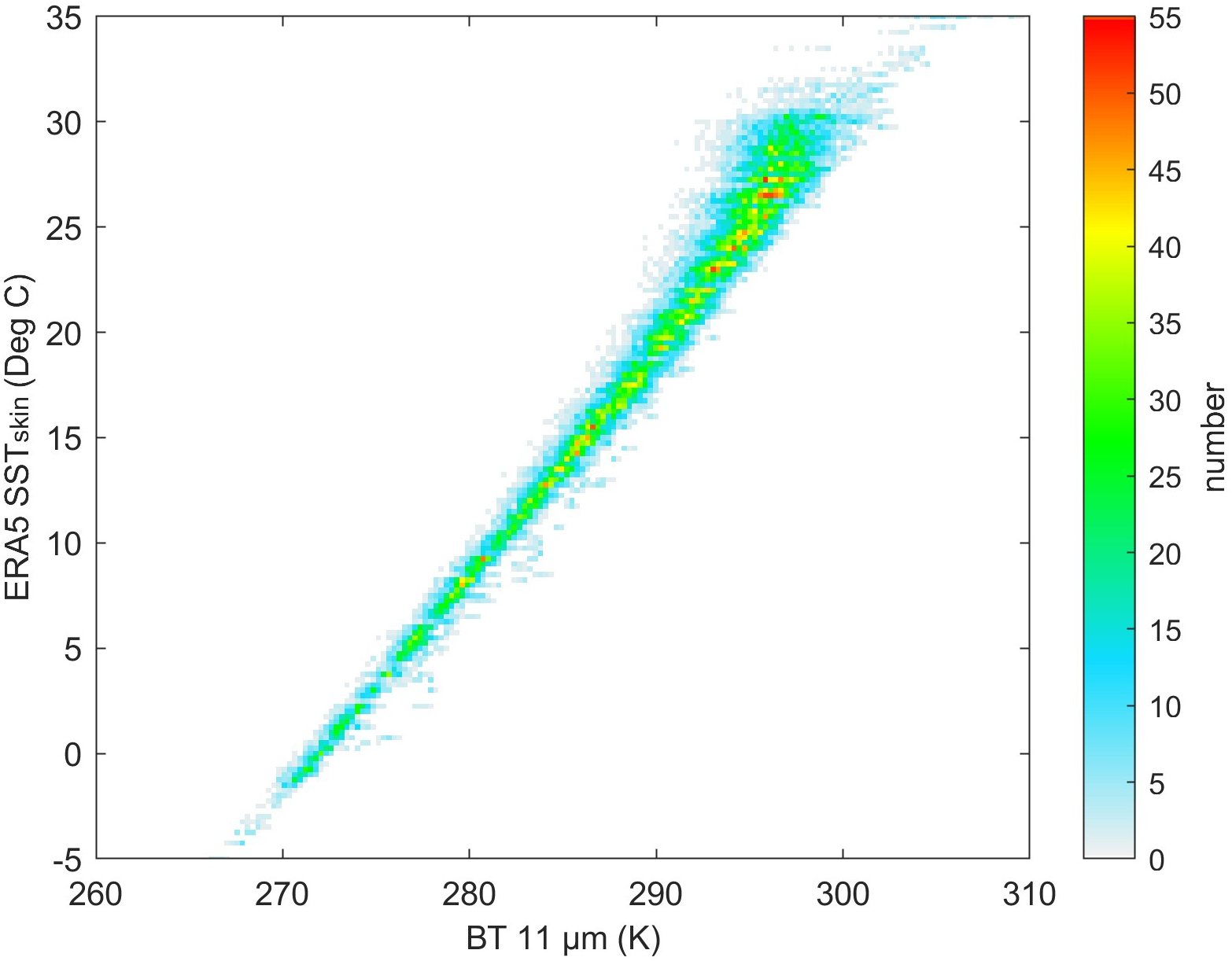 The relationship between ERA5 SSTskin and the 11 μm channel BT.