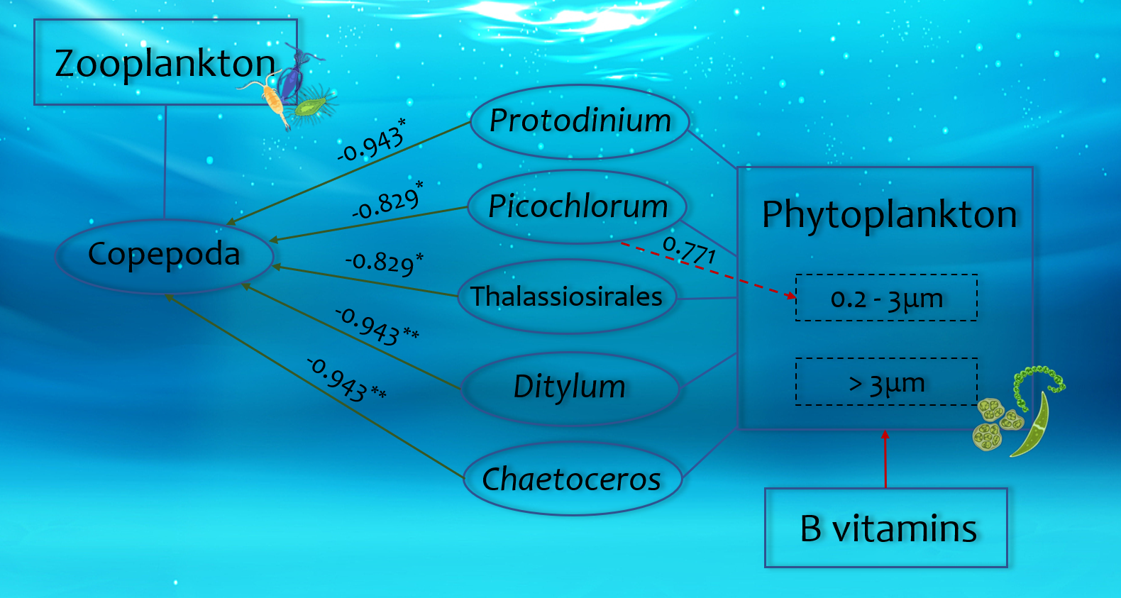 B vitamins play a crucial role in shaping phytoplankton and zooplankton communities in marine ecosystems, yet their impact on community dynamics remains poorly understood.