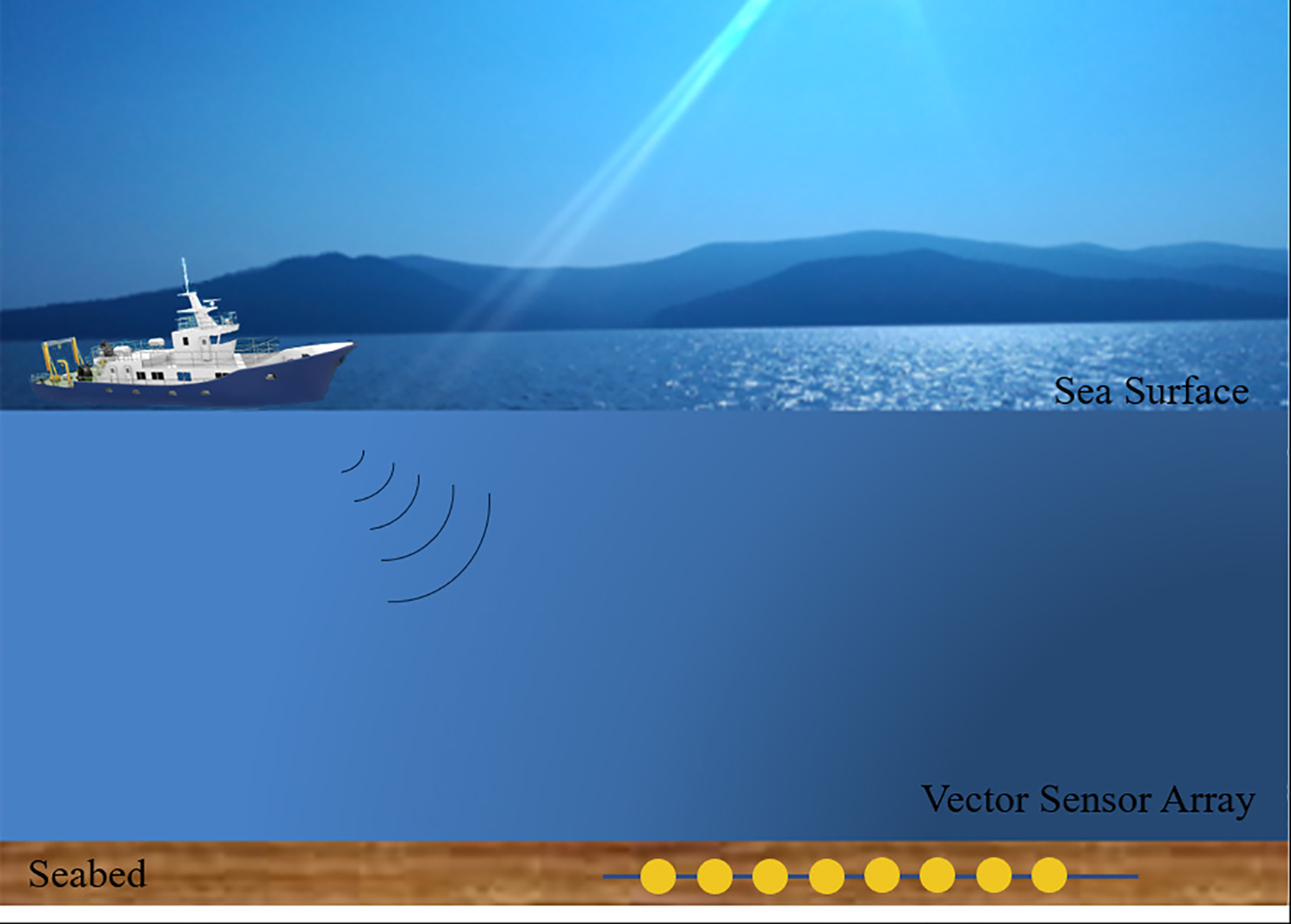 In underwater signal detection, vector hydrophone linear arrays are often used. Each vector hydrophone can be composed of hydrophone and velocity sensors. Owing to the frequency-independent dipole directivity of the vector hydrophone, a vector hydrophone linear array has similar performance but with a smaller array aperture compared with a sound pressure array. Moreover, vector hydrophone arrays have attracted wide attention for their left–right discrimination, which acoustic pressure arrays cannot provide (Hawkes and Nehorai, 1998). Furthermore, when the signals of vibration velocity and sound pressure are combined, the combination holds strong anti-isotropic noise ability (Santos et al., 2011; Felisberto et al., 2016; Felisberto et al., 2018). As for practical applications, fulfilling coprime array configuration in underwater vector sensor arrays is a recently new attempt (Chen et al., 2023). Moreover, the issue about DOA estimation of co-frequency signals for underwater coprime vector sensor array is still expected to be addressed.