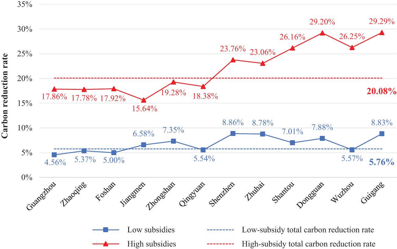 Combined with the previous calculation method for the carbon emissions in port container collection and distribution network, the change in carbon emissions under the subsidy policies can be given by: