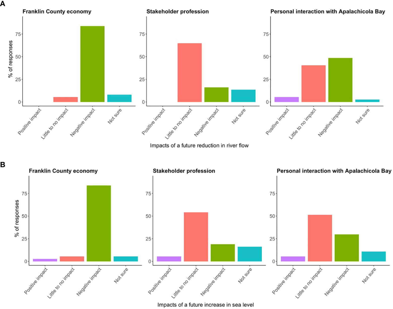 It is also important to consider local ecological knowledge and perceptions (LEK) of abiotic and biotic changes in the Apalachicola Bay system, and how these changes impact the human community. Assessing LEK in combination with scientific studies provides a more complete representation of the ecosystem and potential stressors it faces (Sánchez-Jiménez et al., 2019). Incorporating both scientific findings and LEK into ecosystem assessments is important for developing sustainable management actions that are supported by both scientific research and community stakeholders (Mackinson et al., 2011). Existing stakeholder engagement by scientific researchers in Apalachicola Bay has primarily focused on the impacts of the oyster fishery collapse and oyster reef restoration efforts (Camp et al., 2015), but there is a lack of LEK incorporation into studies investigating climate and human-related stressors on other species within the Apalachicola Bay system.