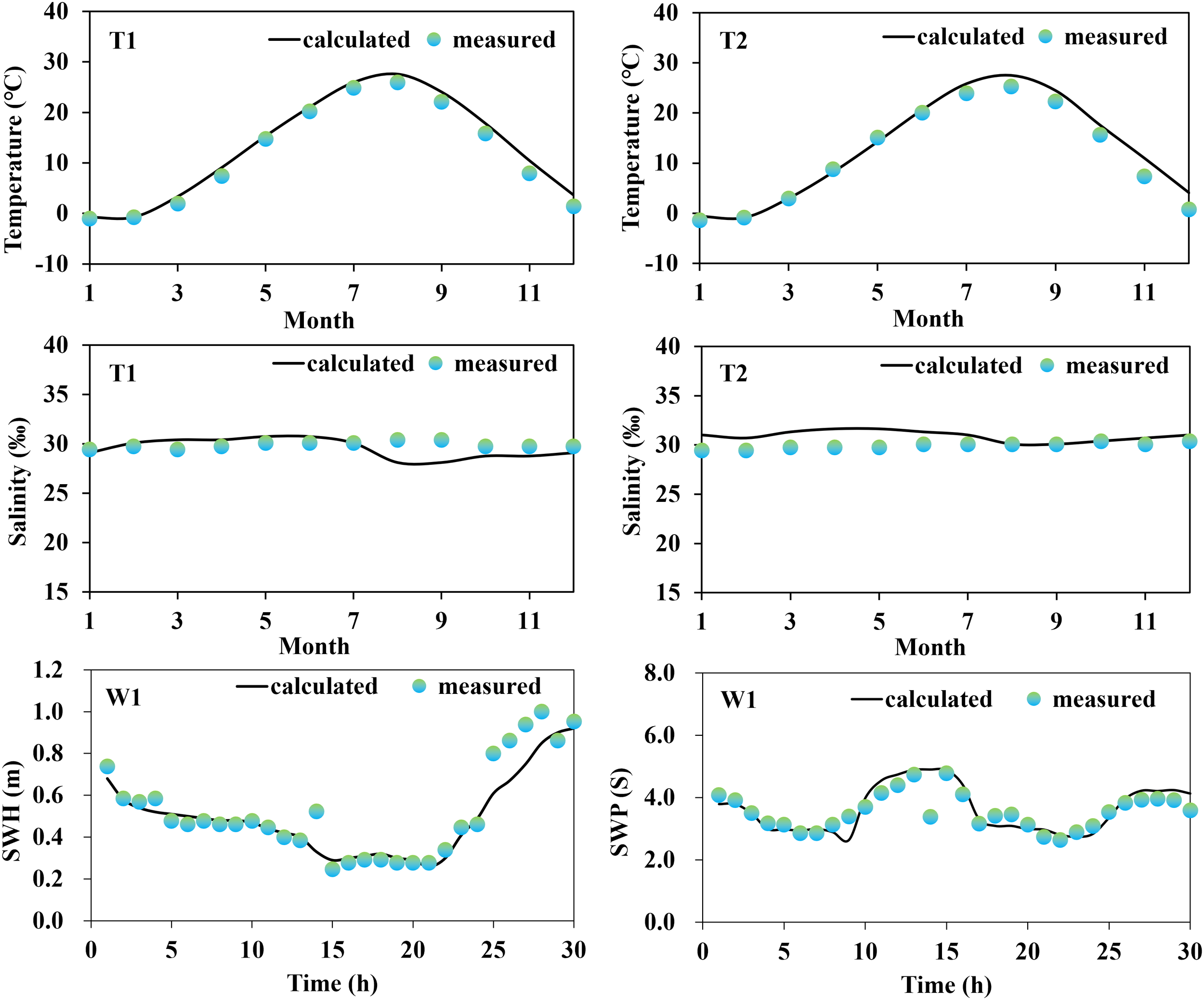 Water temperature, salinity and wave validation process.