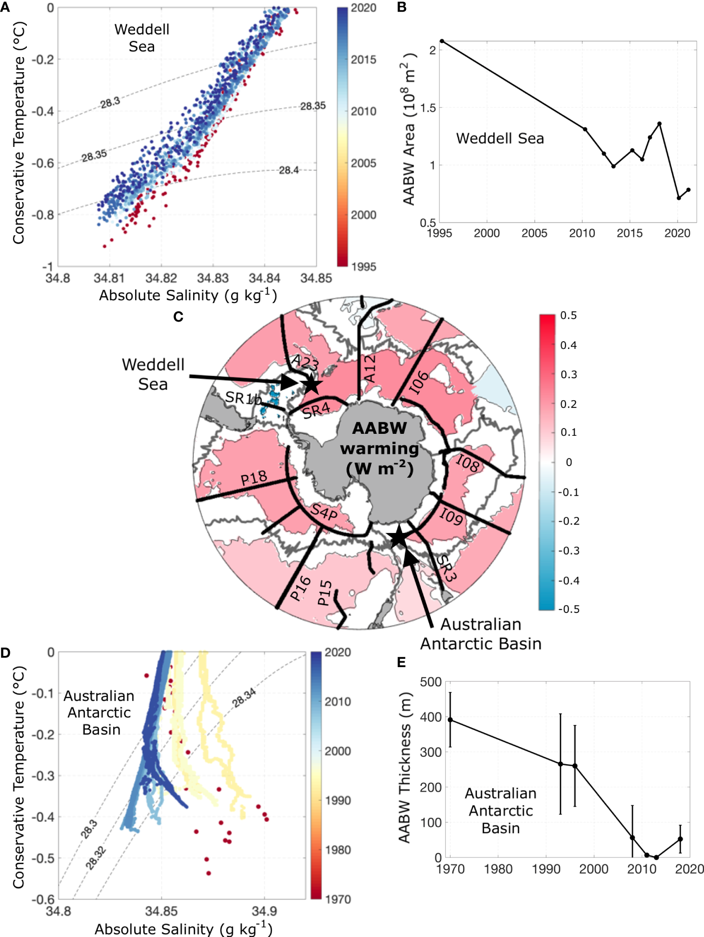Zhou S. Meijers A. J. S. Meredith M. P. Abrahamsen E. P. Holland P. R. Silvano A. et al . (2023). Slowdown of Antarctic Bottom Water export driven by climatic wind and sea-ice changes. Nat. Clim. Change13 (7), 701–709. doi: 10.1038/s41558-023-01695-4
