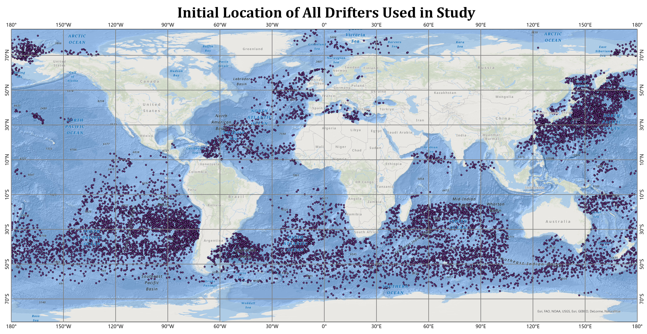 This is vital for studying the wind-induced velocity component. For the drifting process of buoys at sea, the primary dynamic elements originate from the currents and sea surface wind. We aim to study the mechanism of wind effect on the buoy, and the role of a drogue is to filter out the wind action and capture the current magnitude. Hence, the initial step of data preprocessing involves selecting undrogued drifter data.
