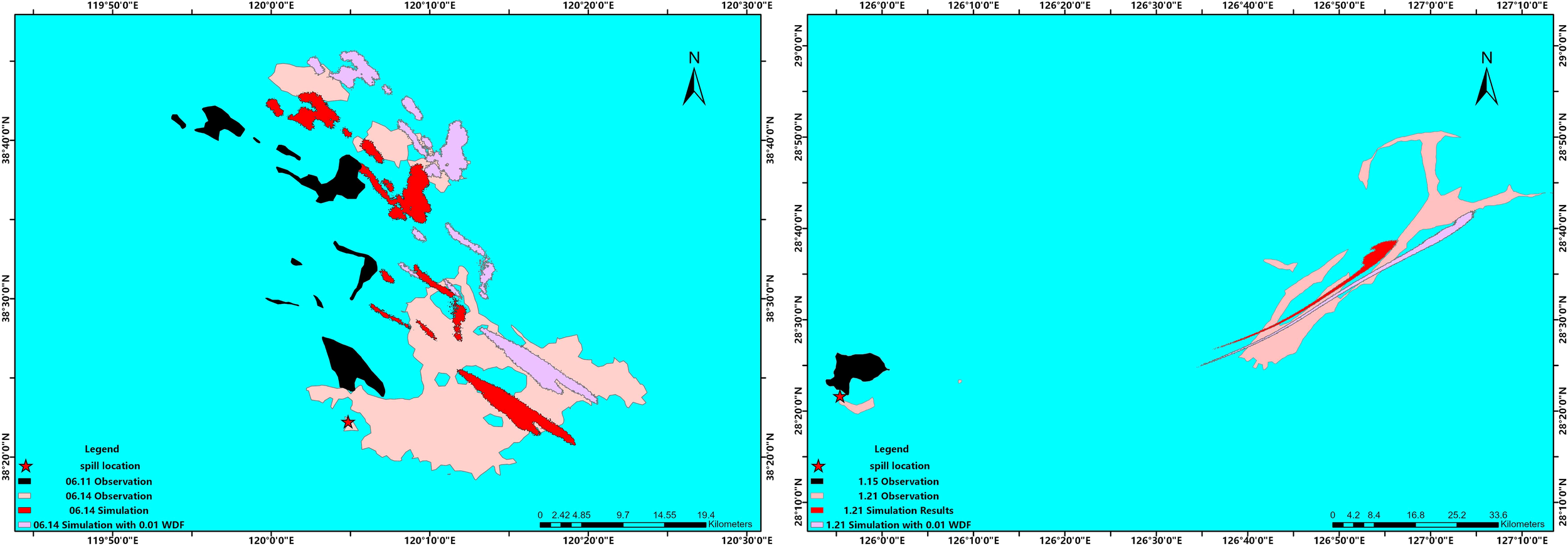 | Penglai 19-3 oil spill | (GMT+8)02:14, 11 June 2011 | 38°17′ N, 120° 4′ E | ERA5 wind | HYCOM | HYCOM | (GMT+8)02:05, 14 June 2011 |