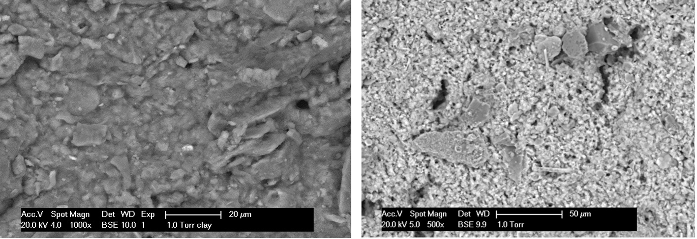 ESEM pictures of clay (left panel) and PoR sediment (right panel).